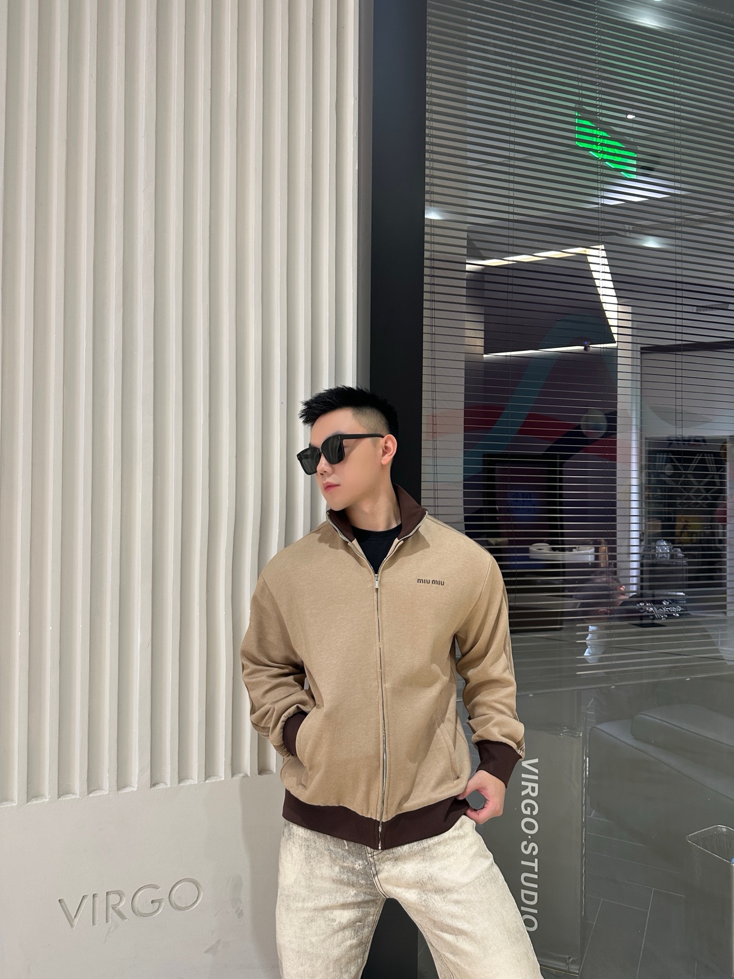 #Miu Miu/缪缪 平纹针织拉链运动外套上身效果