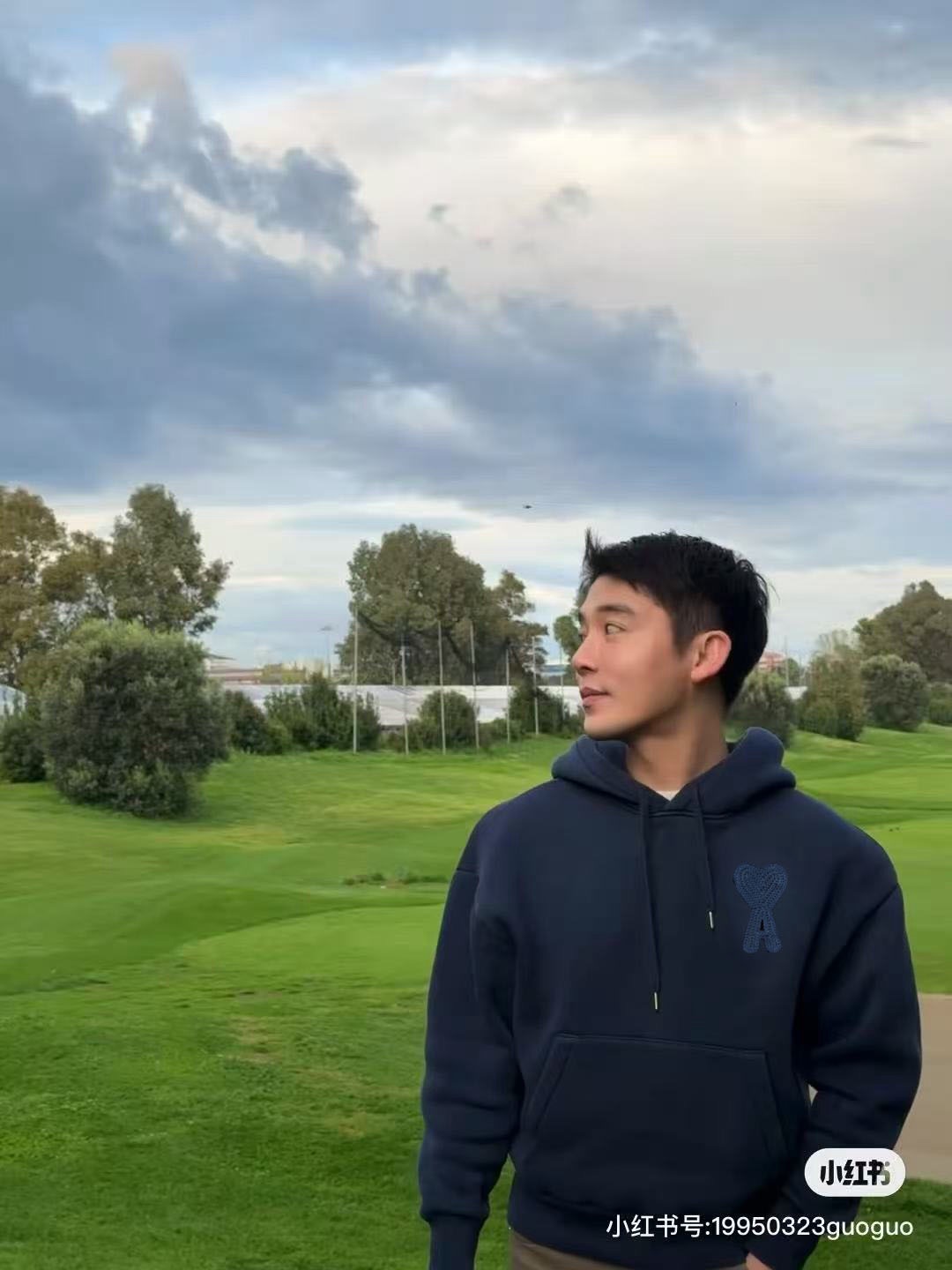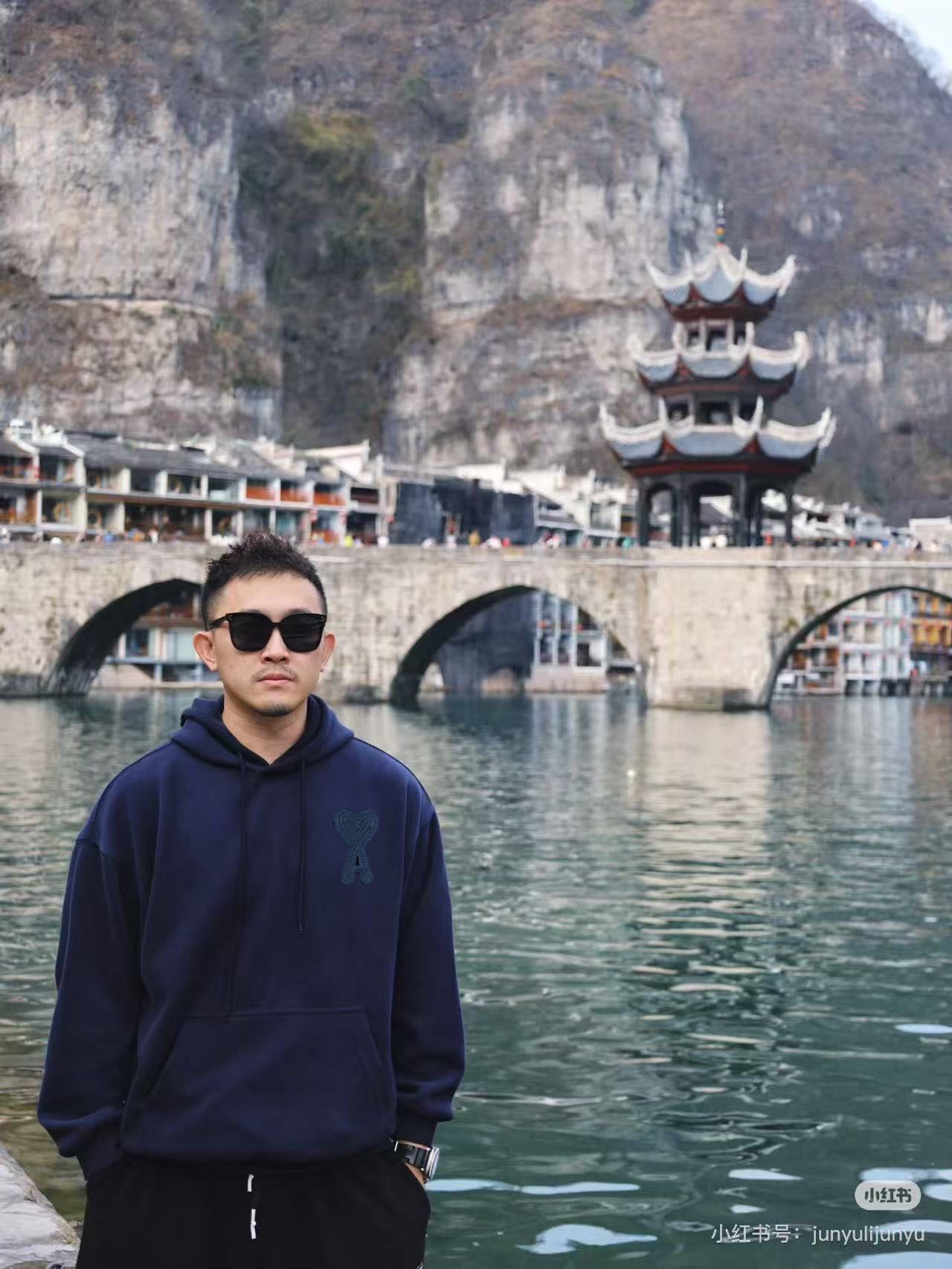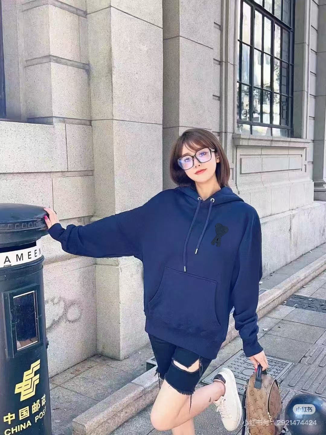 #Ami 爱心钩针刺绣连帽卫衣上身效果