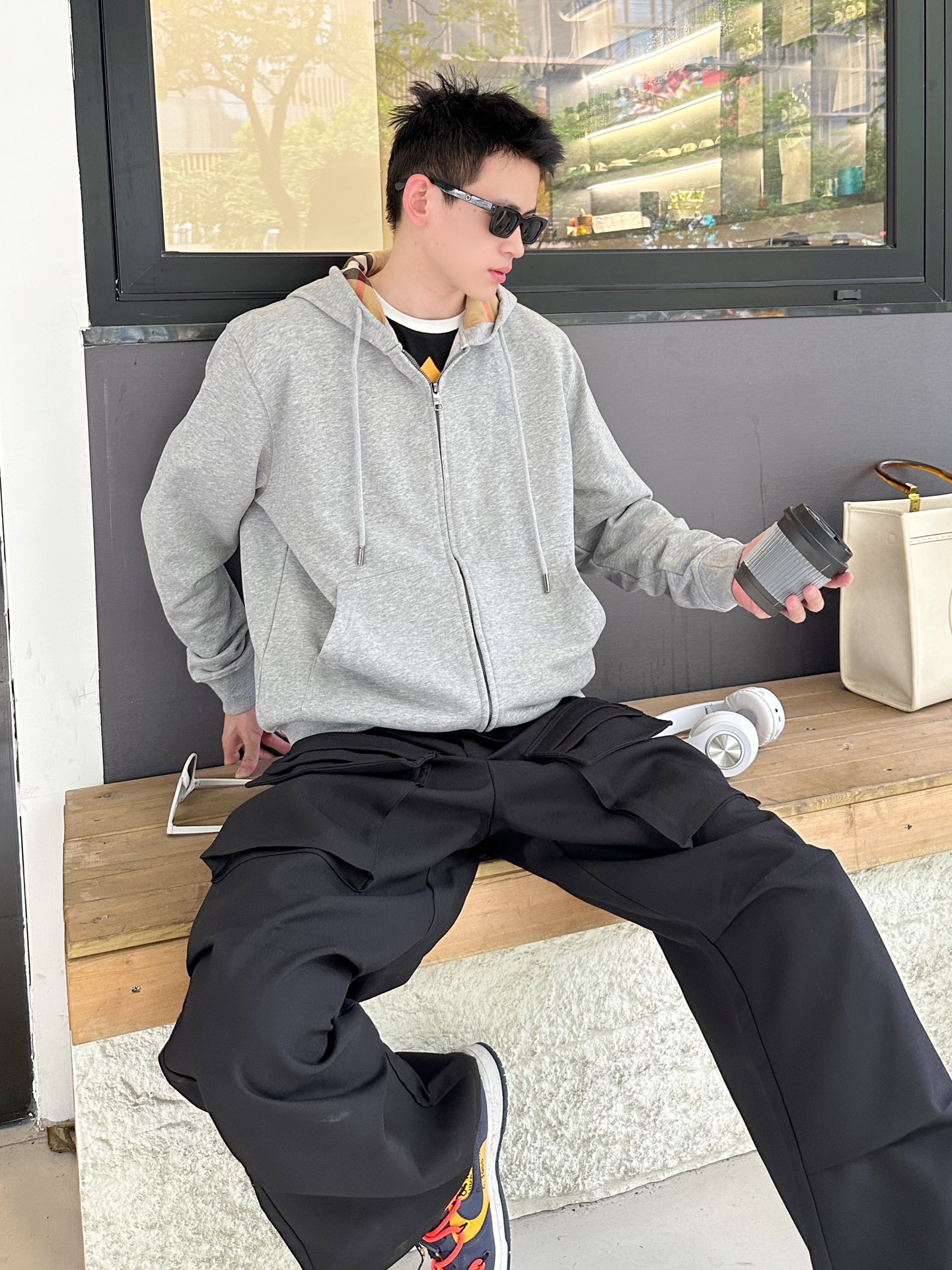 Burberry/巴宝莉 战马小标刺绣格纹连帽拉链外套 上身效果#