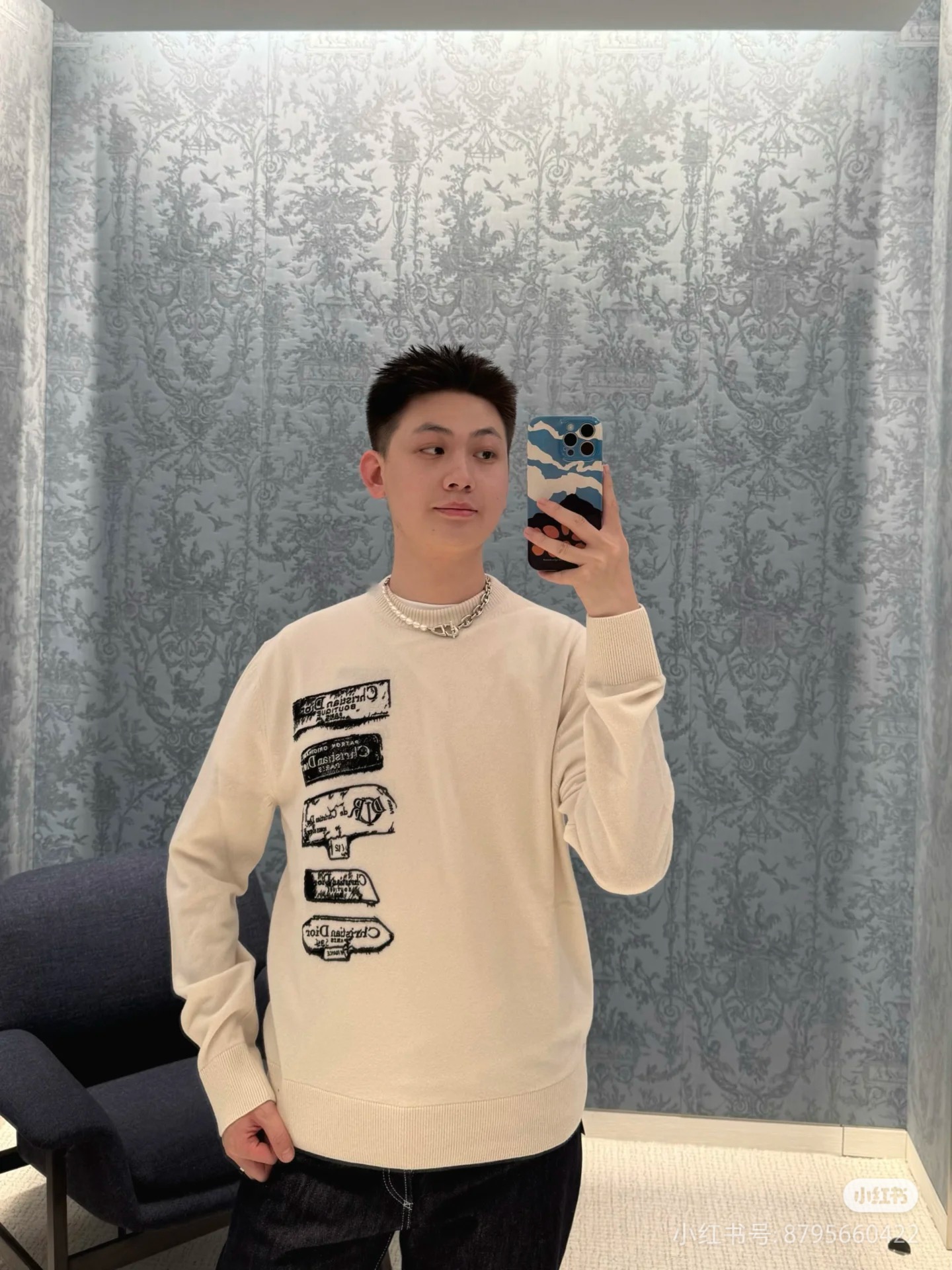 Dior/迪奥 24Fw Archives Labels标志刺绣针织套头毛衣 上身效果#