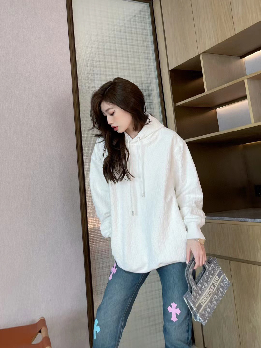 Dior/迪奥 经典满印暗纹毛巾绣连帽卫衣 上身效果#
