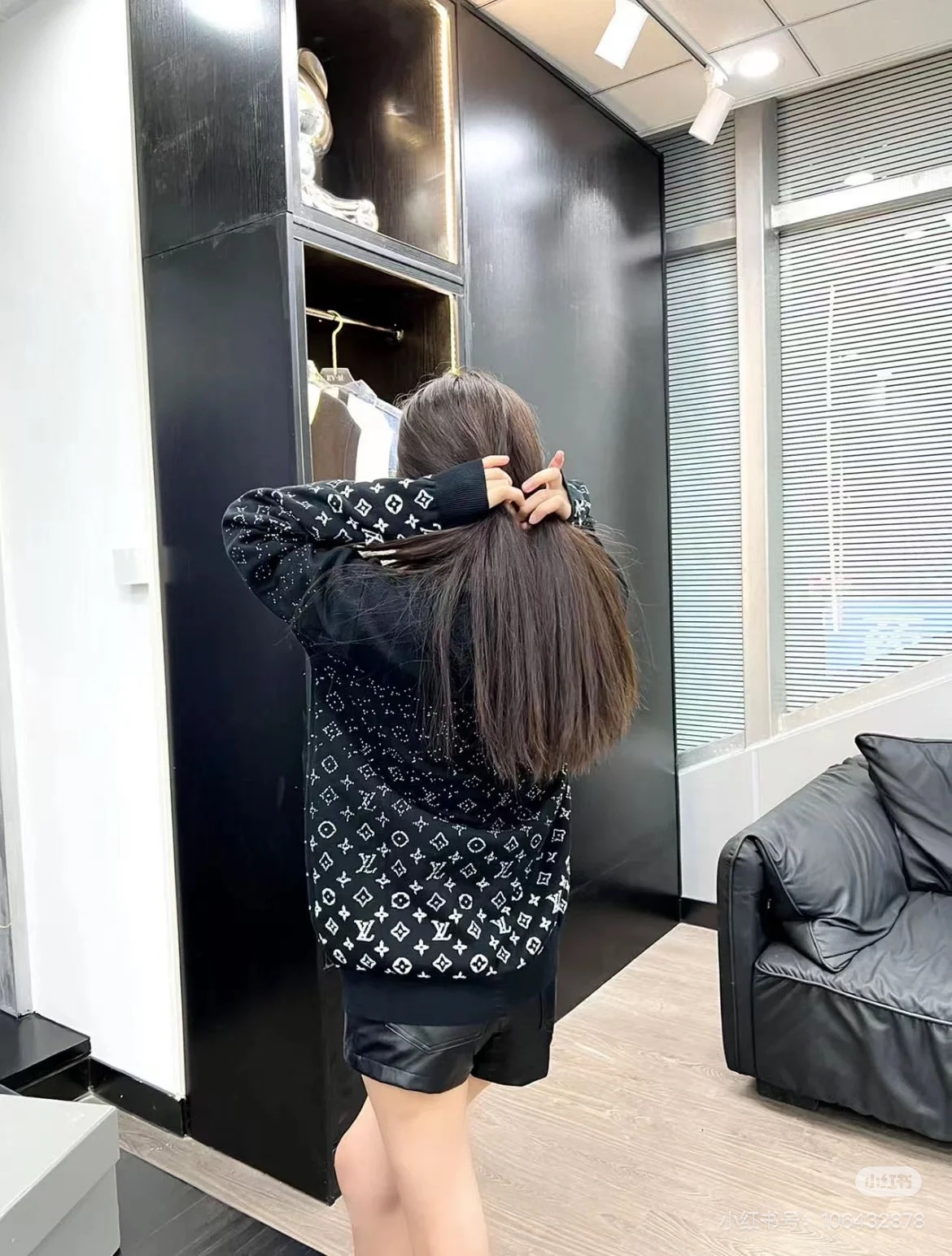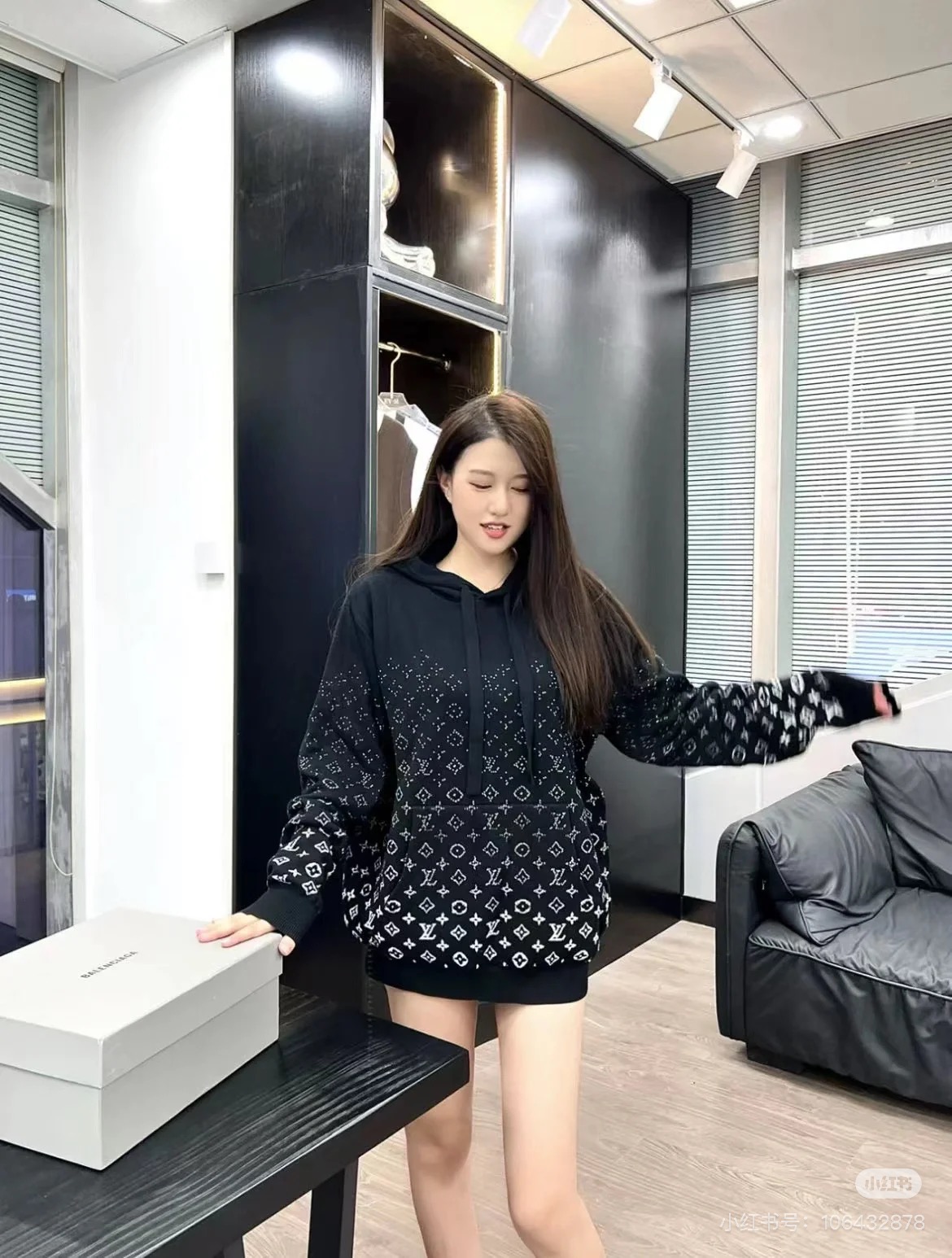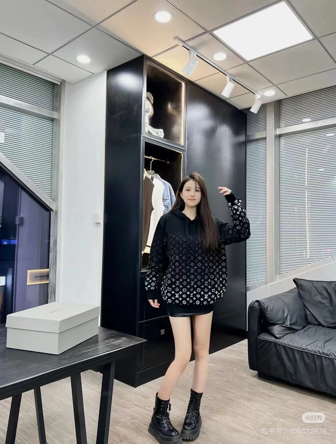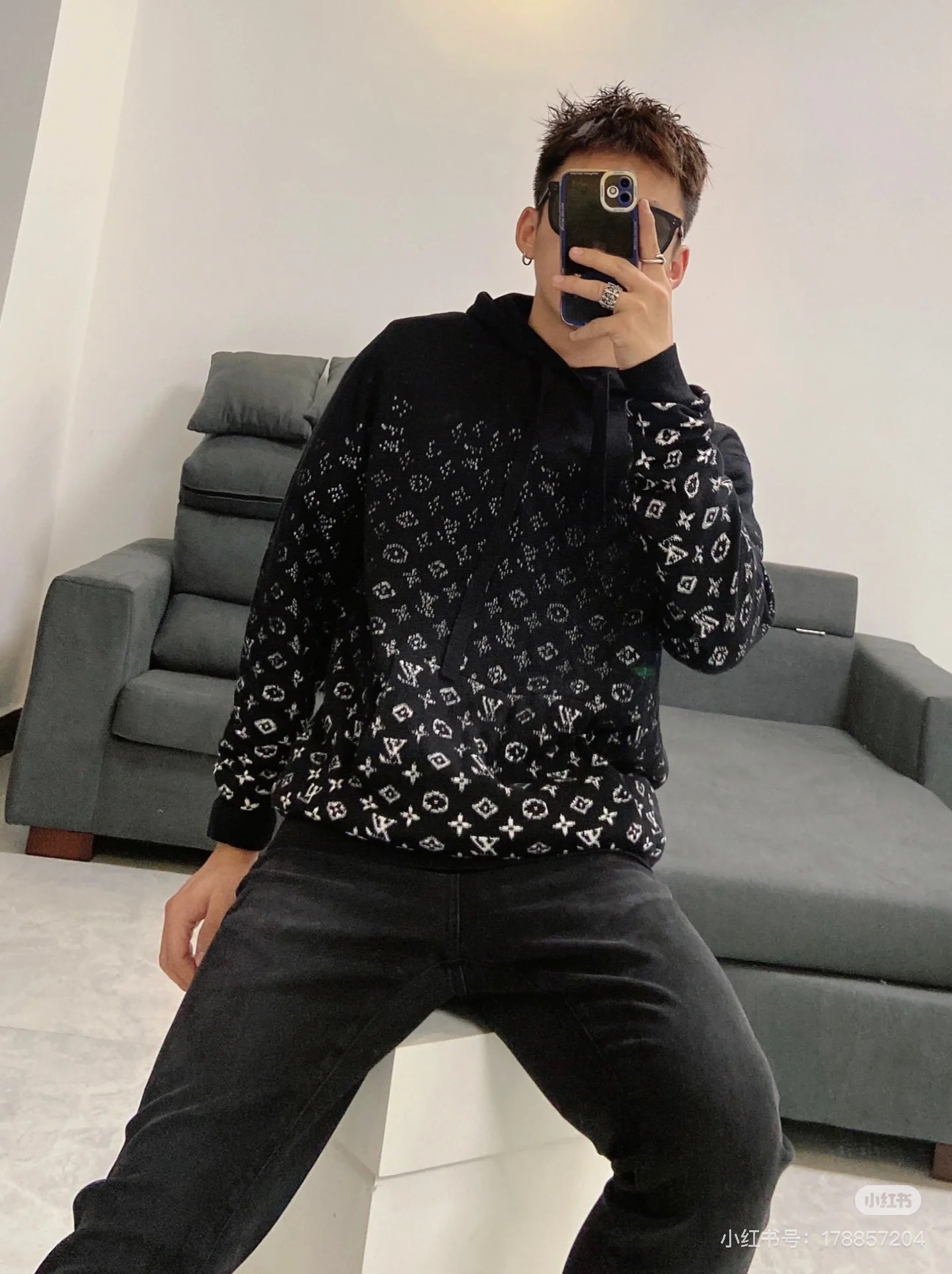 Louis Vuitton/路易威登 老花渐变半身印花logo连帽卫衣 上身效果#