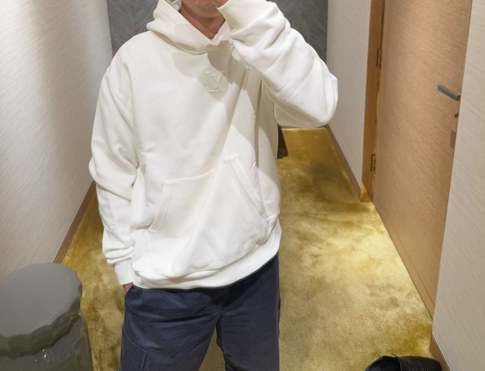 Louis Vuitton/路易威登 25Fw 浮雕字母连帽卫衣 上身效果#