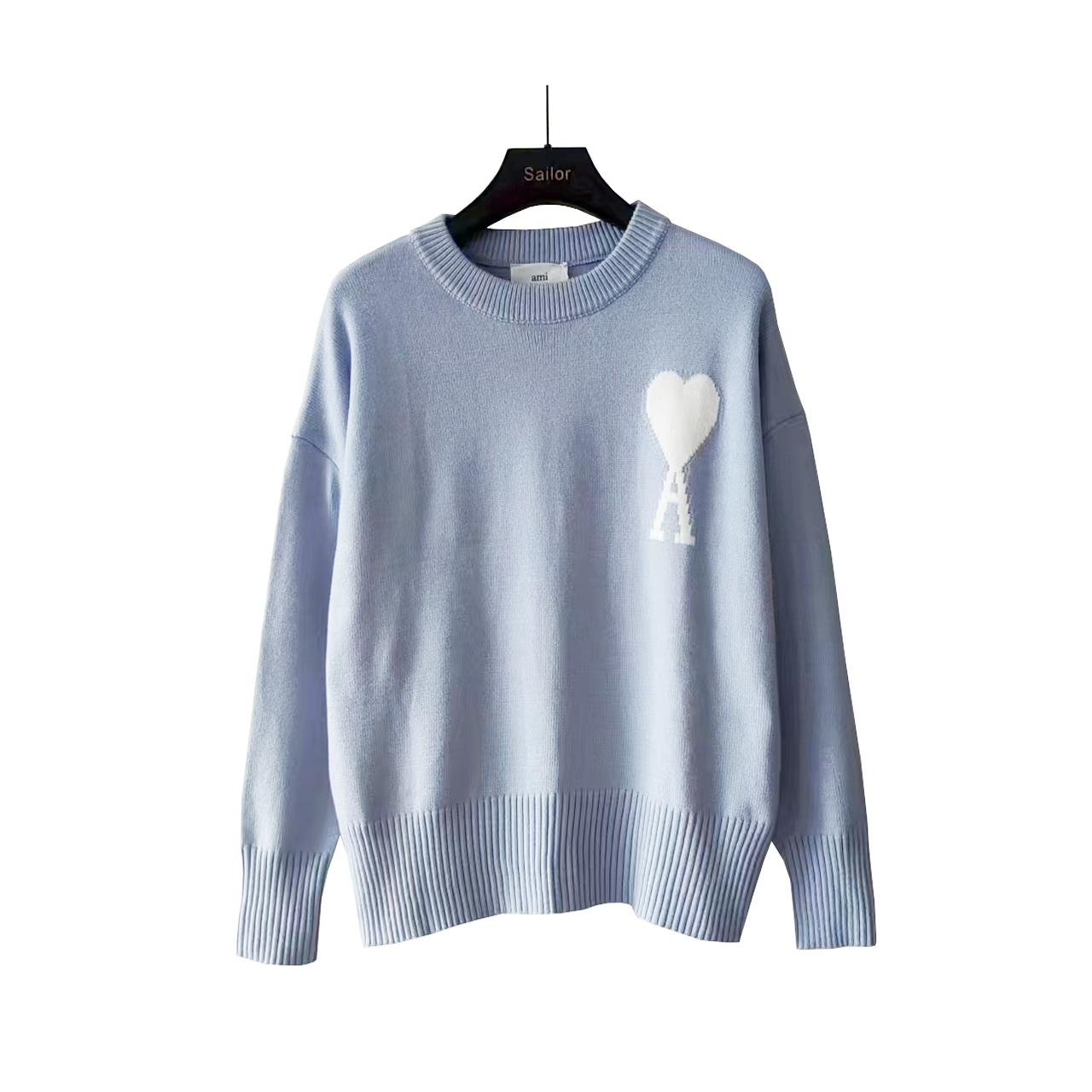 本地自取 💰190 实拍细节图 +尺码表 AMI/艾米 马卡龙色系爱心提花针织圆领长袖毛衣 洗水唛吊牌主麦均为最新版本和图不一样 面料:羊毛混纺 工艺:提花爱心圆领针织 颜色:天蓝 绿色 红色 黑色 藏青色 白色 深灰色 浅灰色 CR001@ 码数:S M L XL