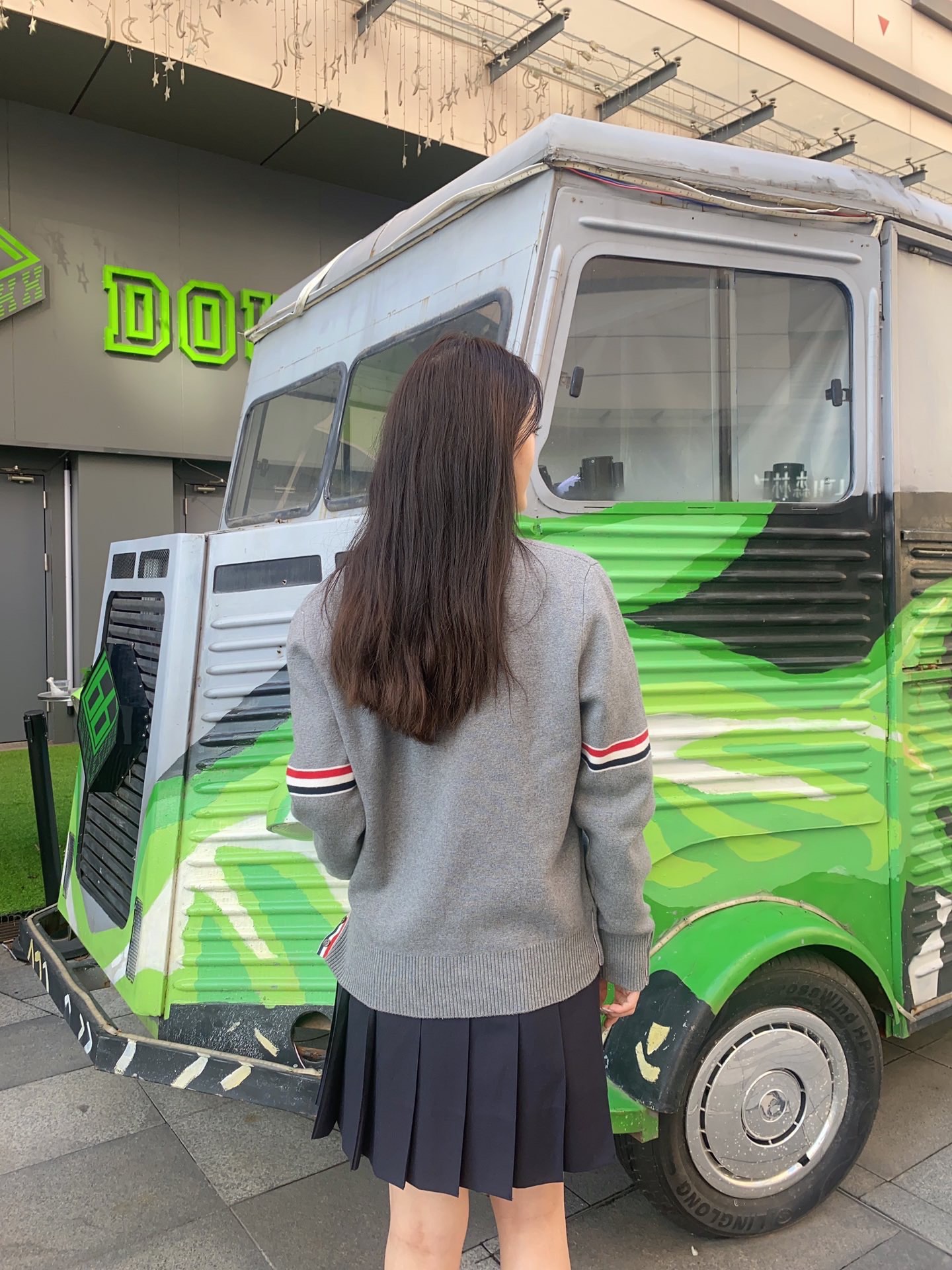模特上身效果 THOM BROWNE 汤姆布朗 .TB经典双袖标加厚毛衣五扣开衫