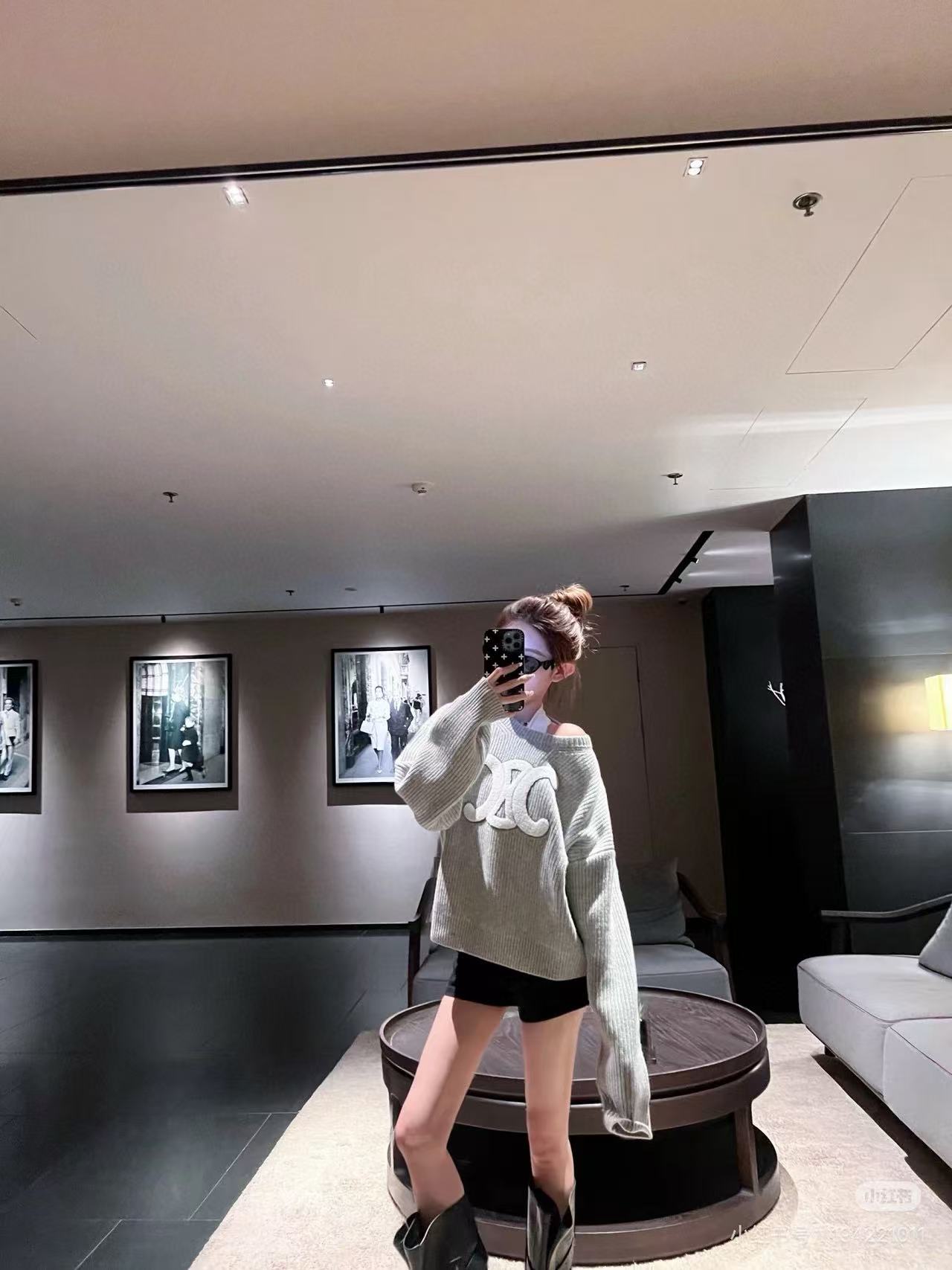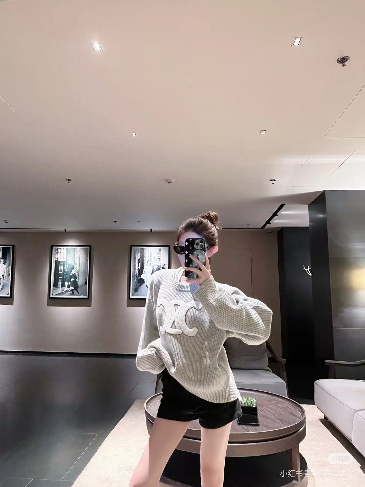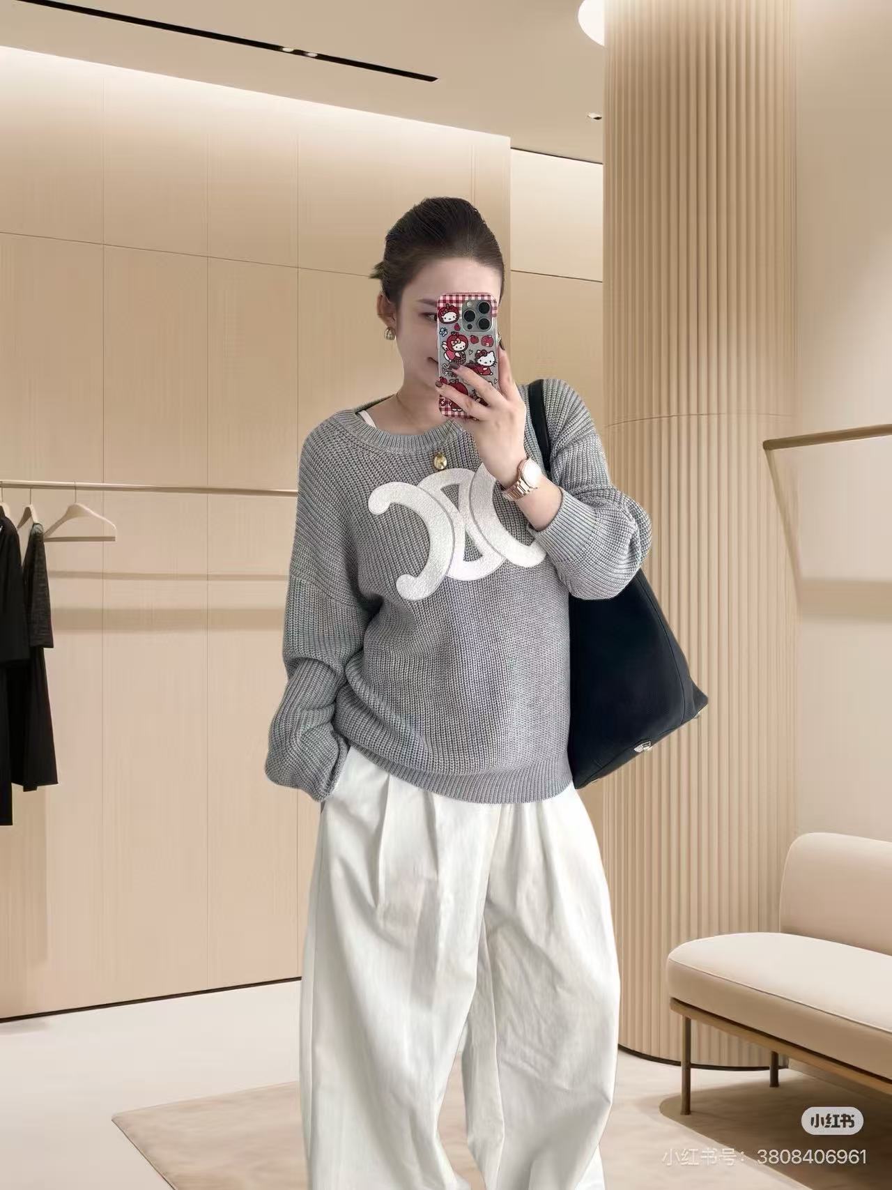 Celine赛琳25ss凯旋门毛巾绣圆领针织毛衣 上身集合