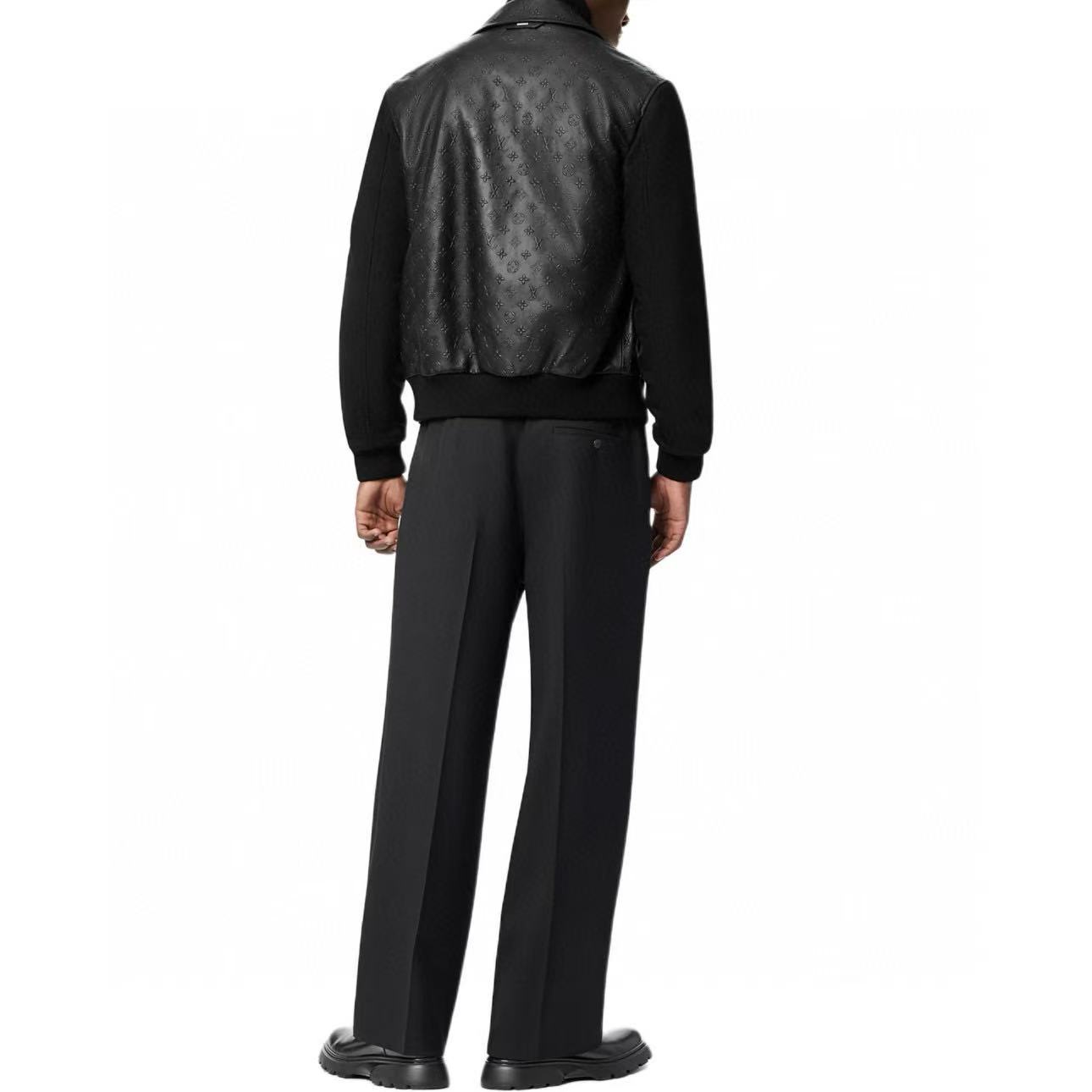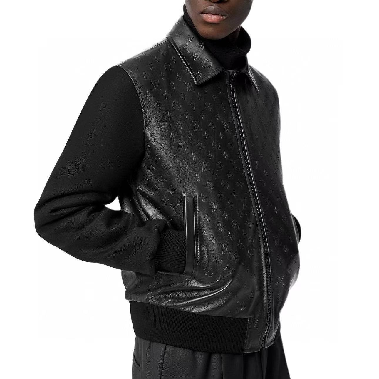 LOUIS VUITTON路易威登 LV 25ss满印压花皮质拼接外套夹克皮衣 上身集合
