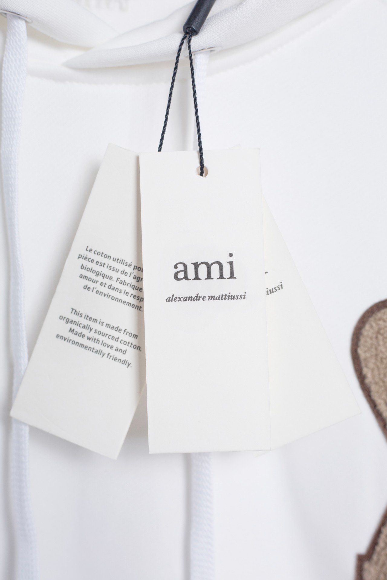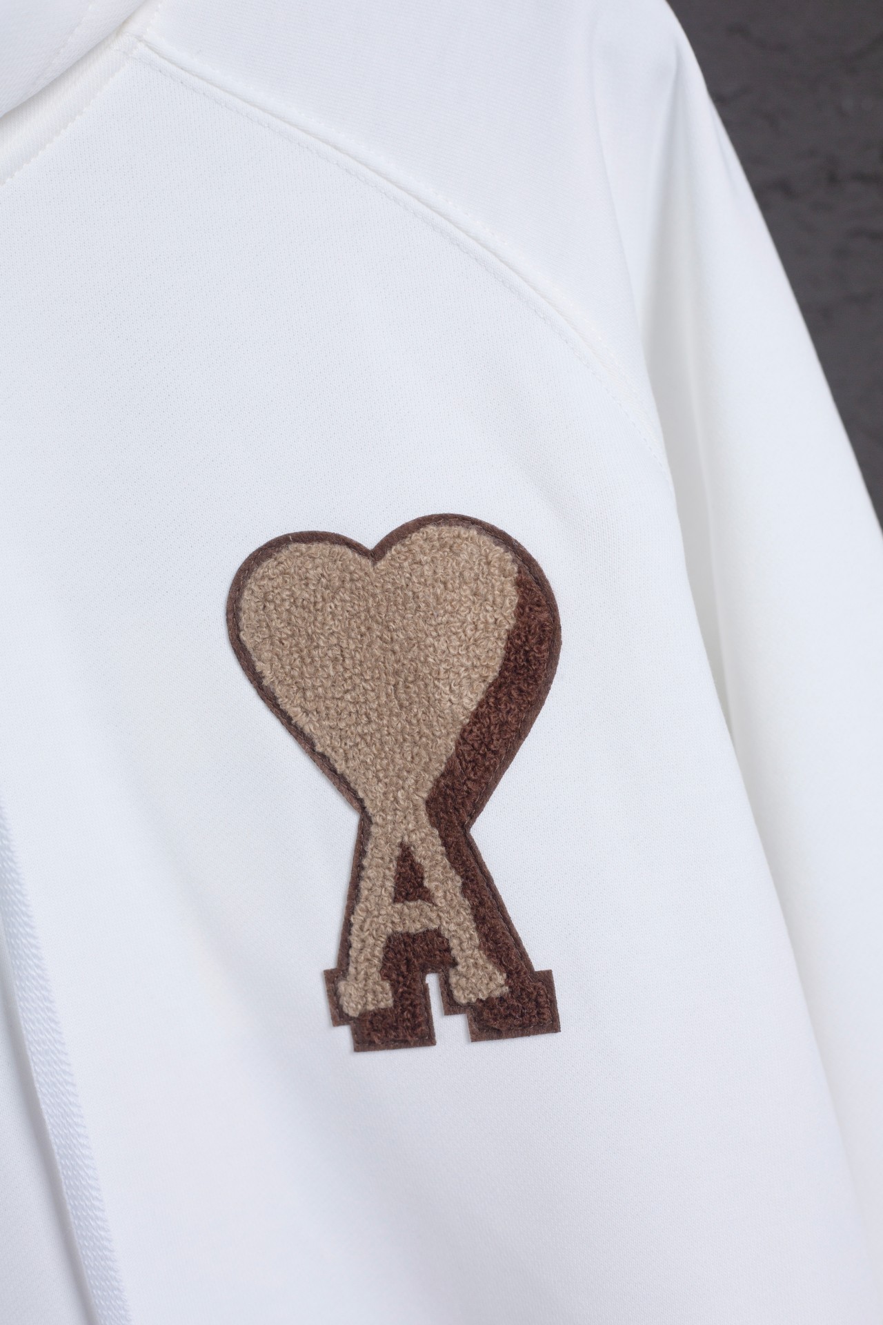 本地自取:💰220 Ami 重影爱心毛巾绣连帽卫衣 抛开一切乱七八糟的话术 我们直接来到商品参数: ✅ 380g定制粗糙手感面料 ✅正确同色定染帽绳 搭配正确2孔吊钟 帽绳克重800g高密度纯棉 市面的帽绳只有200g左右 高品质的卫衣一大细节就是看帽绳 区别市面低货low货 ✅螺纹采用500g高克重重磅纯棉螺纹 同缸同色定织定染 与面料无色差 机洗水洗不易变形 ✅绣花采用正确立体毛巾绣 形状正确 区别市面平面平绣版本 ✅织带采用定染高密高厚度V型织带 对标官网 ✅吊牌侧面悬挂 官网正确版本 2025版两张水洗唛 区别市面3张4张的乱贴错误版本 ✅版型遵照官网 全球购上架无压力 ✅正确12c高克重包装 Size:S-XL