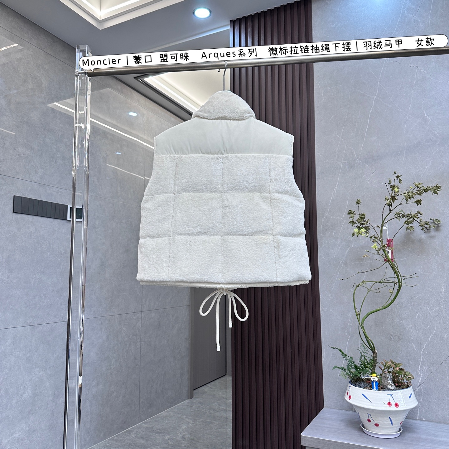 💰:核心私聊 有量有价 Moncler|蒙口 盟可睐 Arques系列 徽标拉链抽绳下摆|羽绒马甲 女款 Moncler蒙口盟可睐Arques系列徽标拉链抽绳下摆女款羽绒马甲,是时尚与保暖的完美融合,专为追求品质与风格的女性打造: • 设计风格 ◦ 复古演绎:采用泰迪绒质地面料,致敬60年代俏皮纹理,尽显现代风格,让你轻松成为焦点。 ◦ 直筒宽松:直筒宽松剪裁,包容各种身材,穿着舒适自在,搭配起来也更加随性百搭。 ◦ 精致徽标:标志性的徽标,彰显品牌身份与独特品味,为马甲增添了浓厚的时尚气息。 • 材质面料 ◦ 温暖材质:外层是柔软的白色人造皮草,触感舒适,带来温柔呵护,里层则选用防风软壳面料,能有效抵御寒风侵袭。 ◦ 高绒填充:填充90%鹅绒与10%鹅羽,高含绒量带来卓越的保暖性能,让你在寒冷天气中也能温暖如春。 • 细节之处 ◦ 抽绳下摆:腰部配有抽绳,可根据个人喜好和穿着需求调节下摆松紧,打造不同的廓形,凸显身材优势。 ◦ 双向拉链:正面的双向全拉链设计,方便穿脱,同时也能满足不同的通风需求。 ◦ 实用口袋:设有贴袋,方便放置随身小物件,贴心又实用。