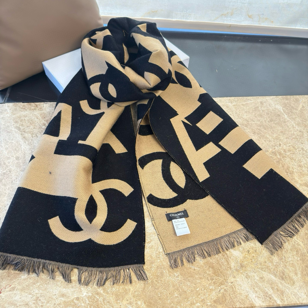 🉐️190🆕香奶奶双面围巾,真香系列❗Chanel今年最火的款,几何图案搭配奶茶驼拼黑,海军蓝拼白,两个配色都超级好看,一年四季可用,最喜欢整条围巾上不规则字母的🉐️attern,非常有氛围感有🉐色,绝对盲买系列,谁围谁好看,材质95%绵羊毛5%桑蚕丝,规格,204cmx43cm 现在天还没冷专柜就各种断货等货了!超级难买❗️