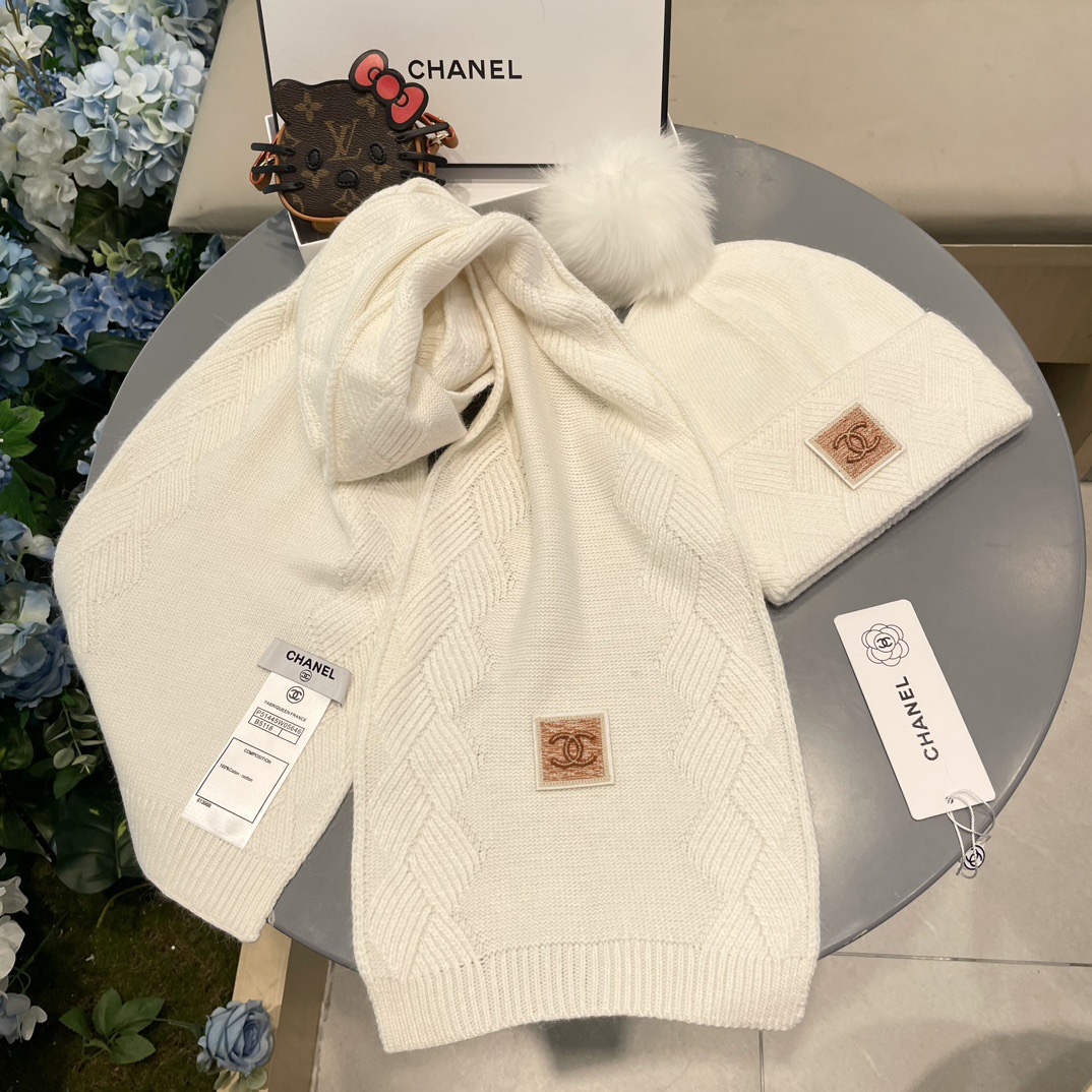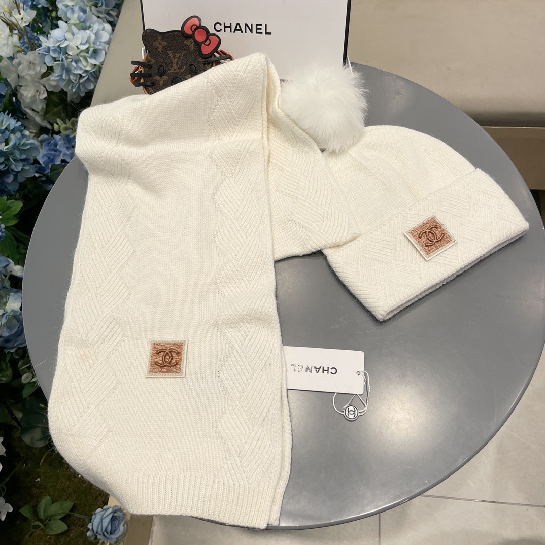 P195Chanel香奈儿经典羊毛套装🌟帽子+围巾配狐狸毛球暖暖哒超级舒服~冬日小姐姐减龄神器哦~这个冬天你就差这么一套套装帽子啦~又保暖又时尚!防伪标签吊卡齐全!