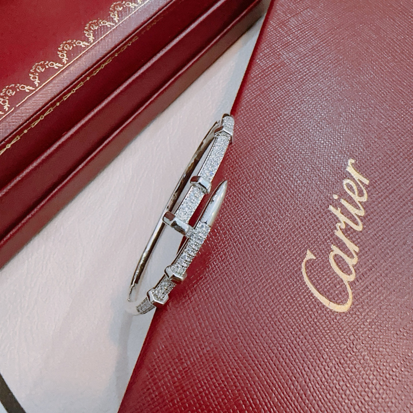 P140 卡地亚手链手镯V金材质系列 品相完美,细节无敌,那种独特的色泽完全无可挑剔,再缀以经典指环外形设计,简约之余却又优雅夺目,V金纯手工的组合更显气色,上手雅致动人。男女同款 卡地亚手链
