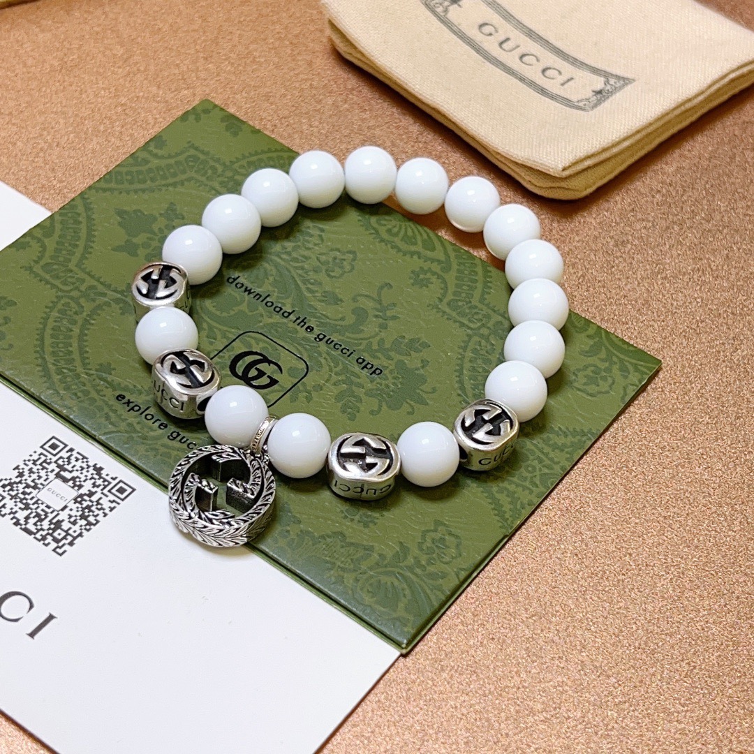 批165 𝐆𝐮𝐜𝐜𝐢古驰手链男女同款 最新款天然水晶手链档次更高明星同款Anger Forest龙年系列双g玛瑙白砗磲手链水晶 尺寸:16-24厘米 细节对版做旧处理 非市面亮面版型 非市面普通做工 这款一直在出 古驰里面热卖款 非常好搭配衣服👔👞