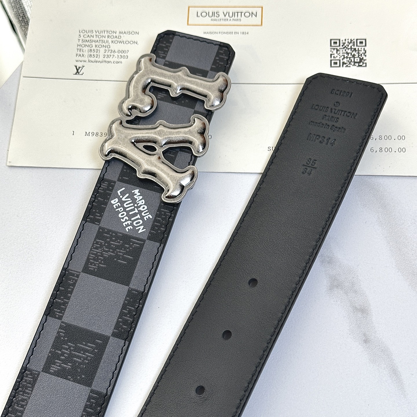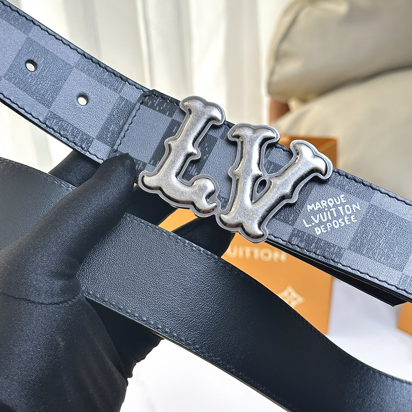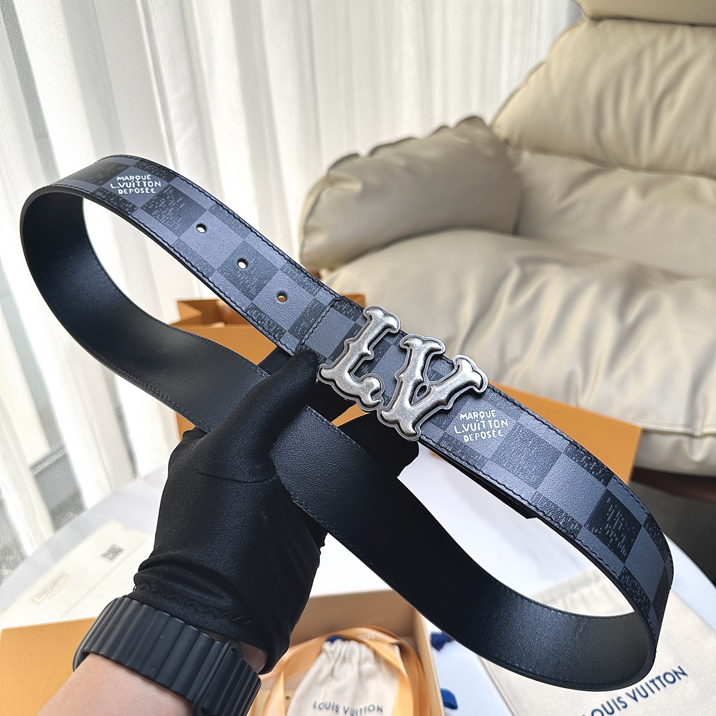 P:150[原版包裝➕1.0】 L0UIS VUITT0N 今季新品 男士原單腰帶 寬度40毫米 雙面進口頭層小牛皮絲印圖案logo設計 搭配最新設計五金 可雙面佩戴 適合沈穩低調的男士使用
