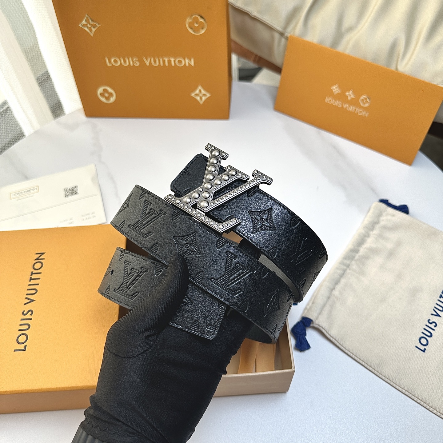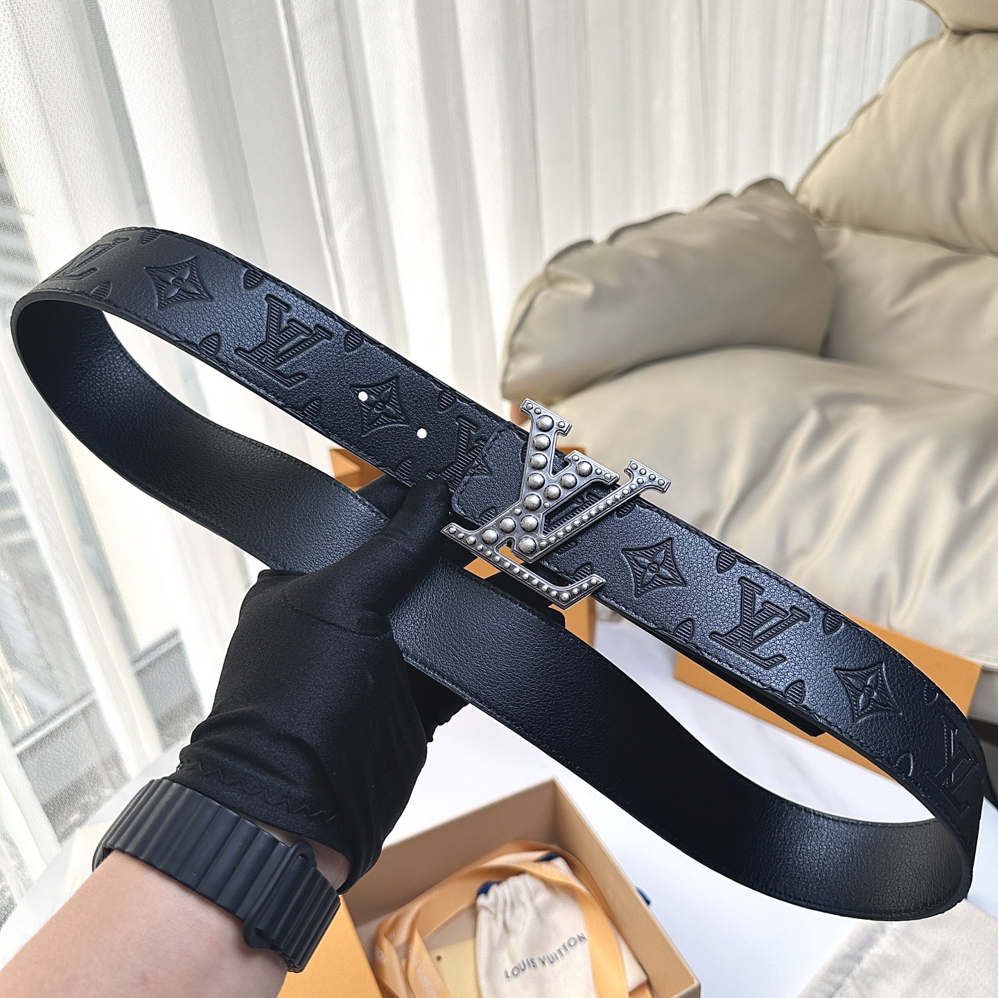 P:150[原版包裝➕1.0】 L0UIS VUITT0N 今季新品 男士原單腰帶 寬度40毫米 雙面進口頭層小牛皮絲印圖案logo設計 搭配最新設計五金 可雙面佩戴 適合沈穩低調的男士使用