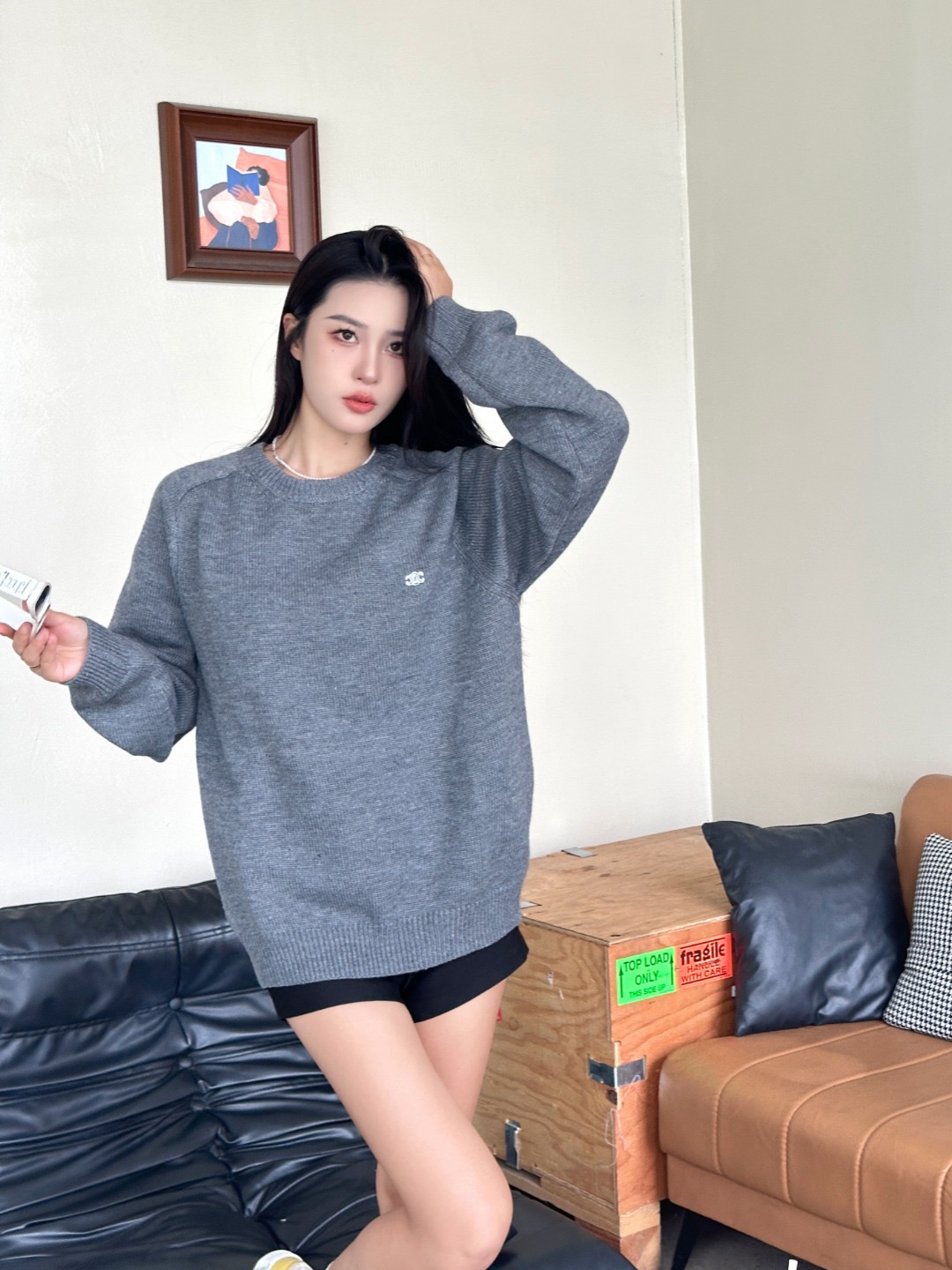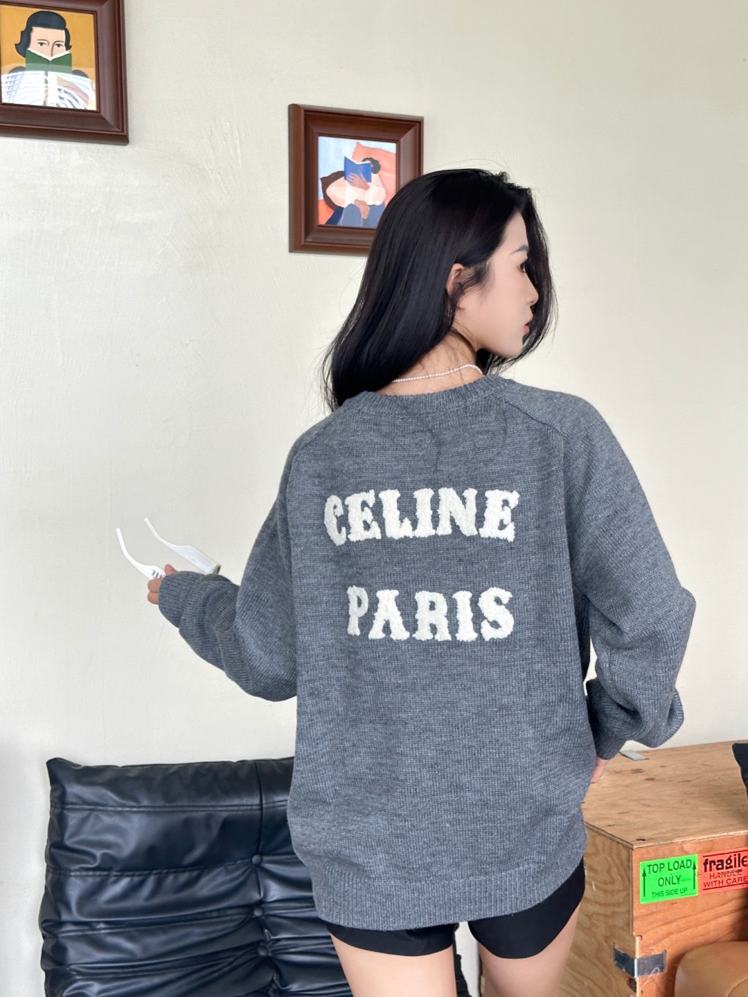#Celine/赛琳 凯旋门后背字母毛巾绣毛衣上身效果