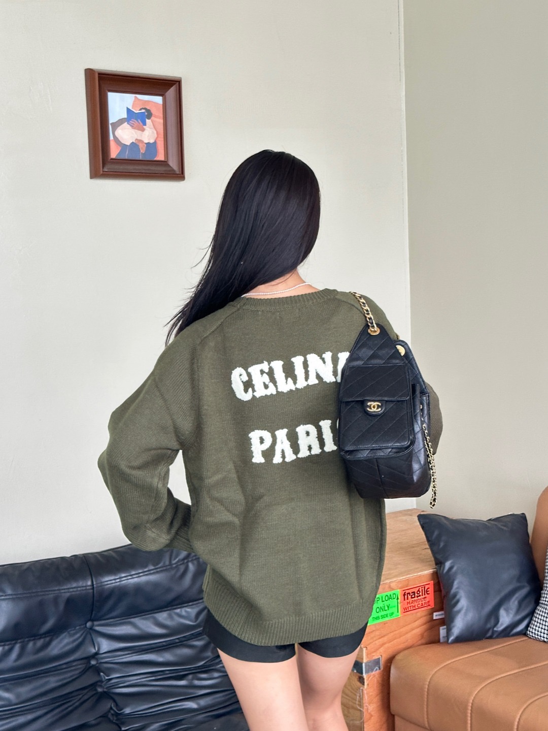#Celine/赛琳 凯旋门后背字母毛巾绣毛衣上身效果