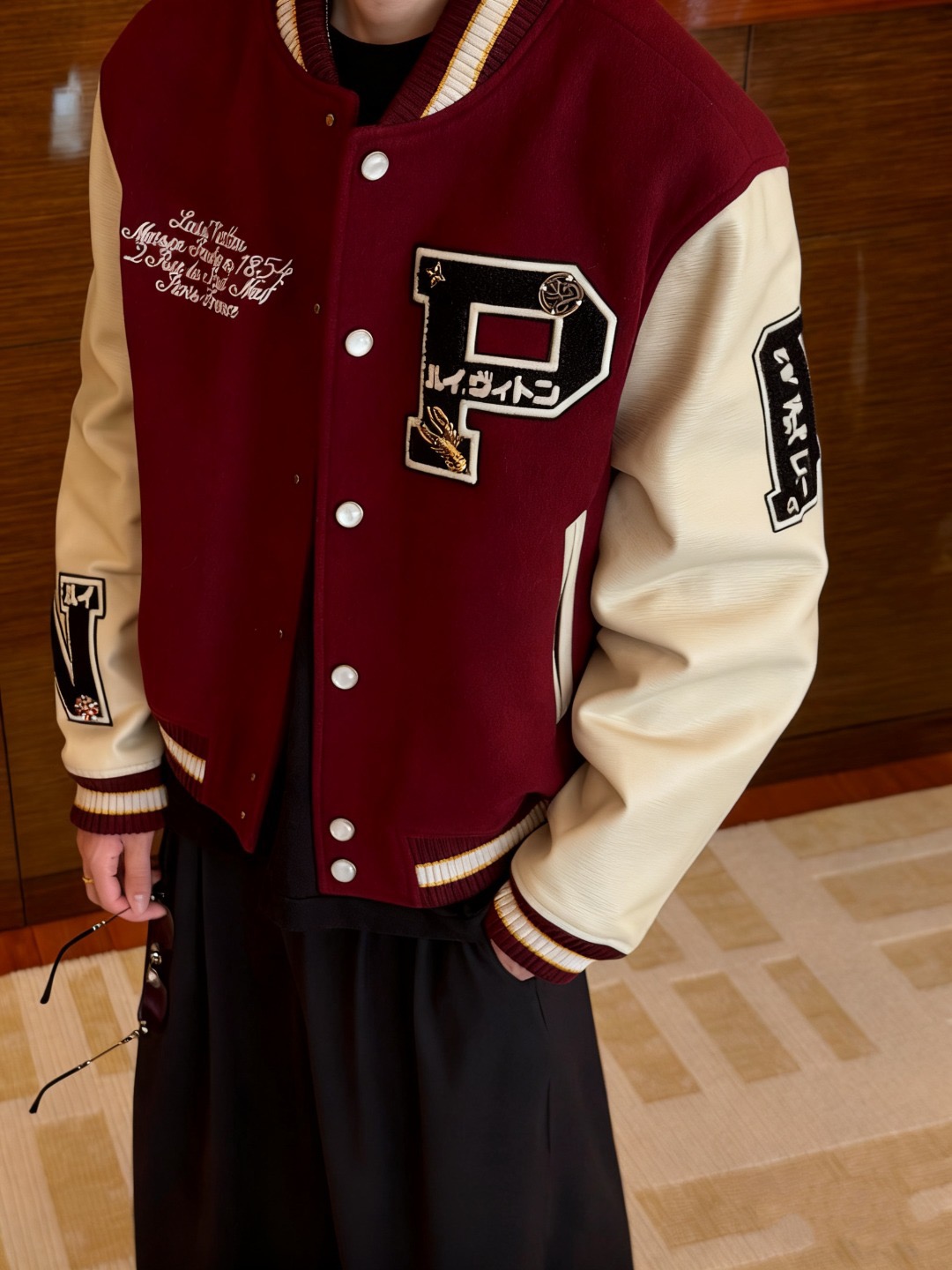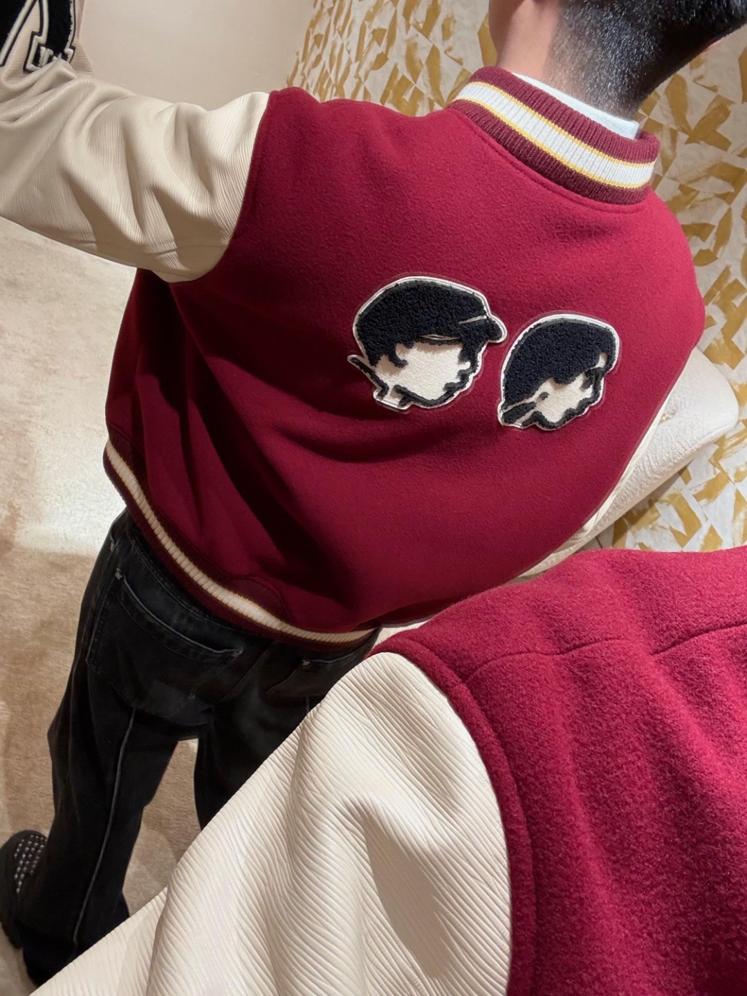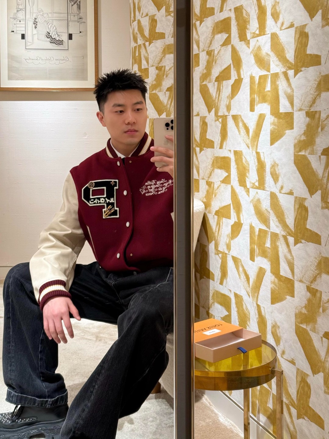 #Louis Vuitton/路易威登 Nigo联名蝎子拼皮棒球服外套上身效果