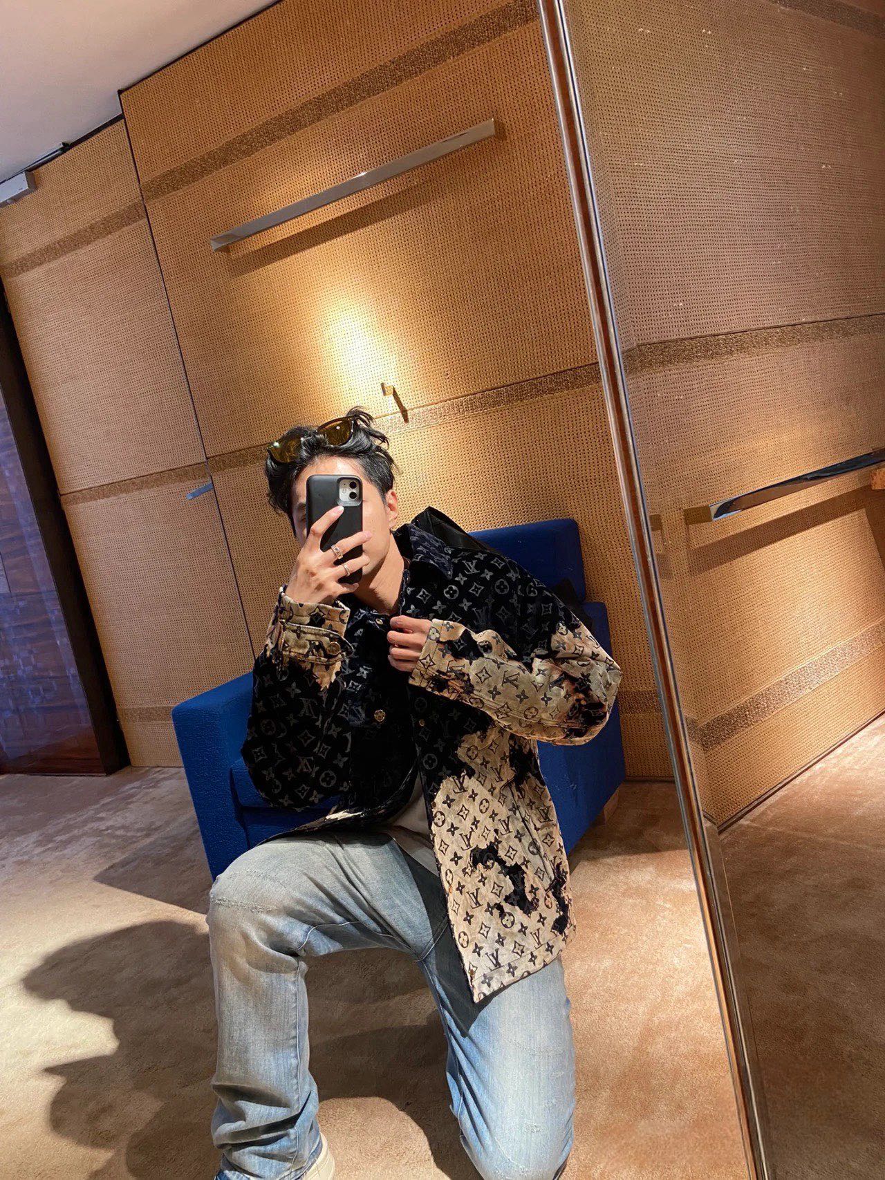 #Louis Vuitton/路易威登 火烧云篝火植绒套装牛仔棉服外套上身效果