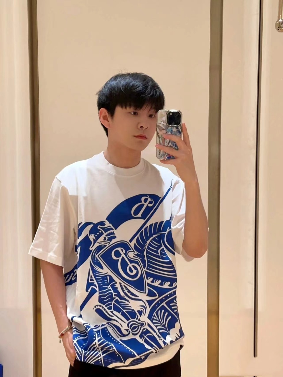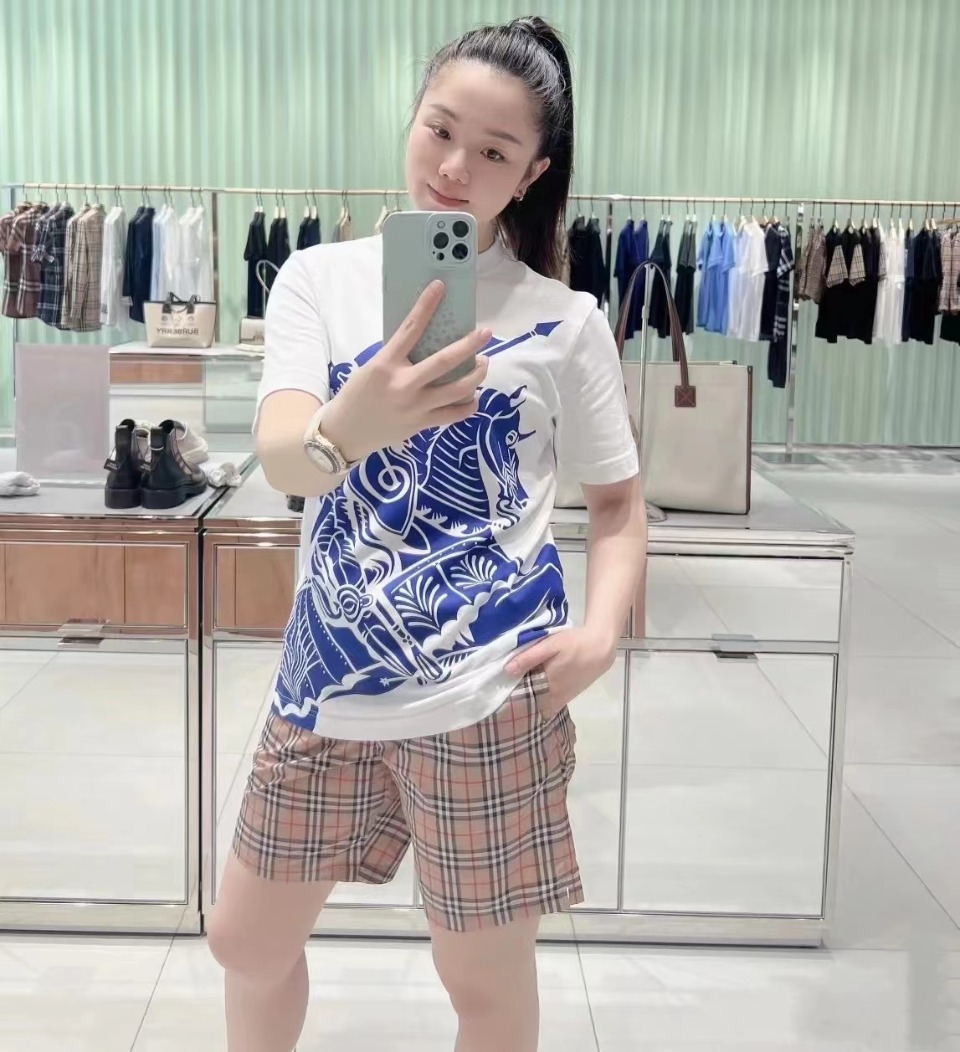 模特上身效果 BURBERRY 巴宝莉 经典战马大Logo印花短袖