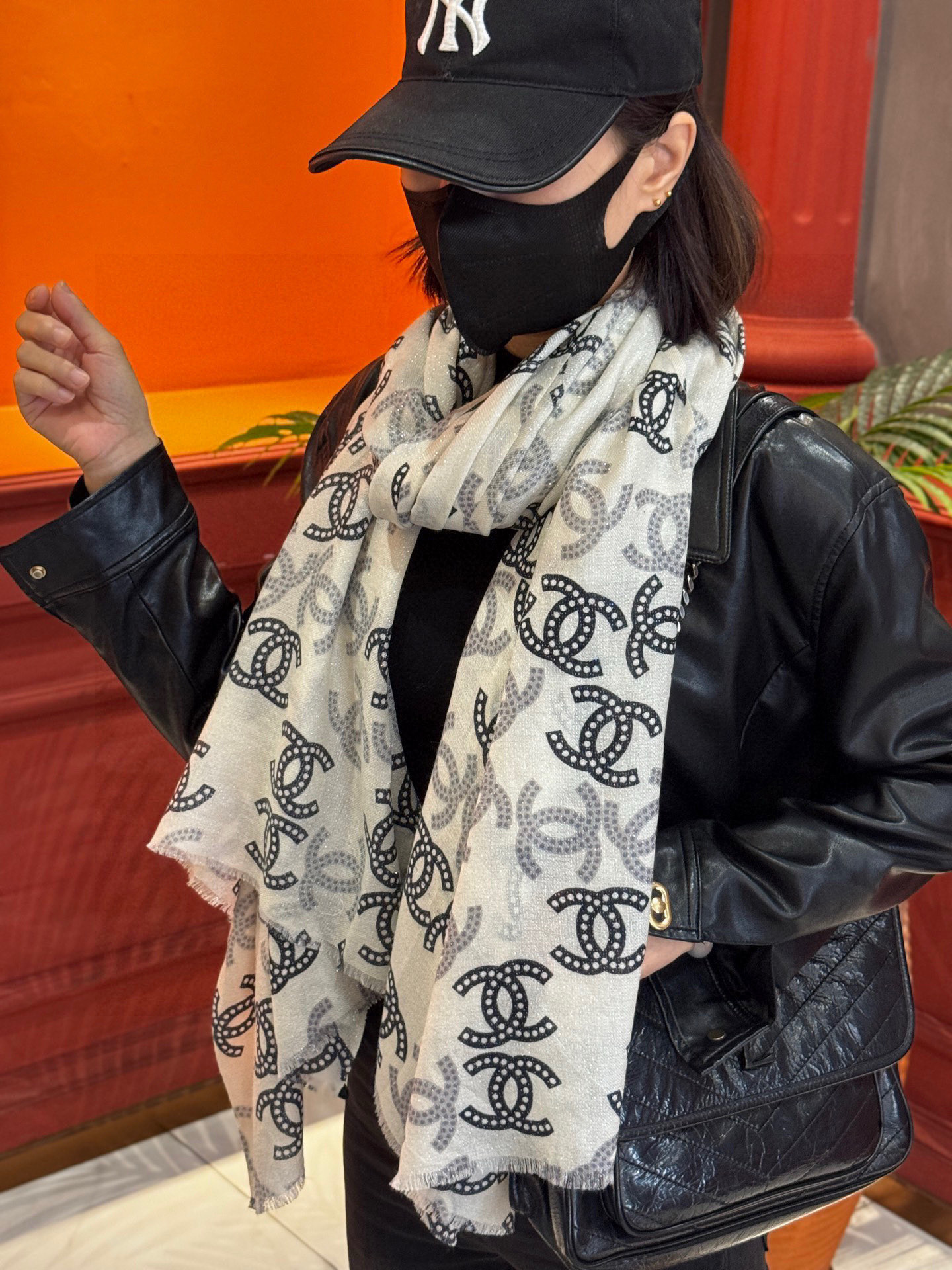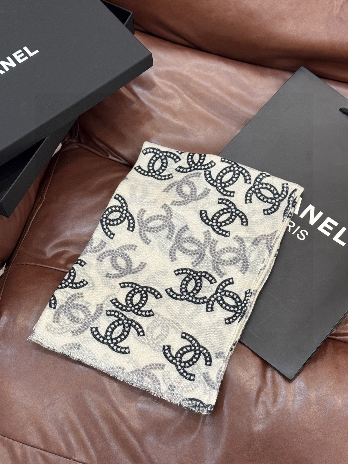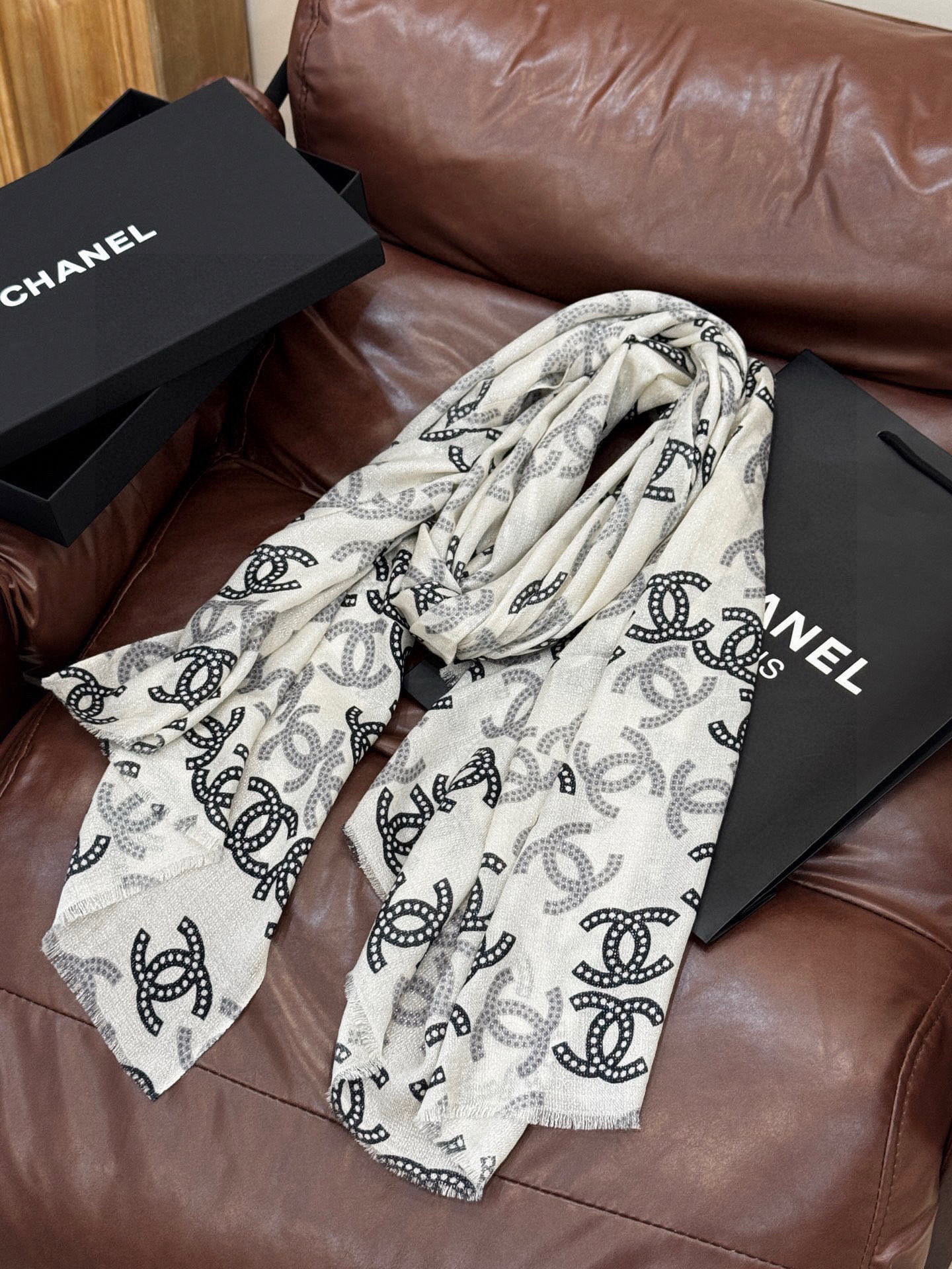 P215 上新🌟 会发光发亮的围巾 💄💋新款客供银线💖羊绒面料长巾 😘美翻了[流泪]【银线双C图案】御用殿堂级极‼️新款专柜在售 纯羊绒银丝线独特设计风格❗加上富有香家本季特色图案印花 美丽至极 真的 上身极为奢华上档次 稀有~小贵~好看不好看自己看吧 ‼尺寸110x200cm 大长巾,100%顶级纯羊绒
