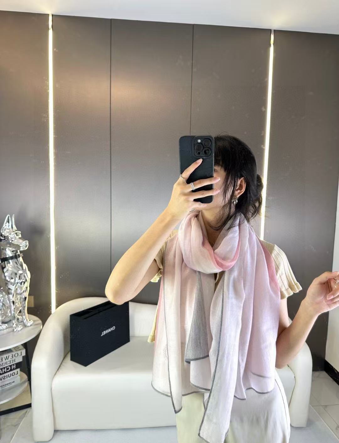 🉐️225 CHANEL2025新款到,重点推荐!!!高级舒适时髦气质。香奈儿这款触动内心的柔美围巾,无法模仿的颜色和气质!!!围巾光影下还会有非常漂亮的🉐殊波纹肌理!一般工厂做不出这样的款,属于羊绒中的佼佼者,成功人士追求的品,颜色我给满分!!!有点独有的仙气,女性气质,颜色淡雅,不过分妖娆!尺寸规格100.200.cm羊绒围巾