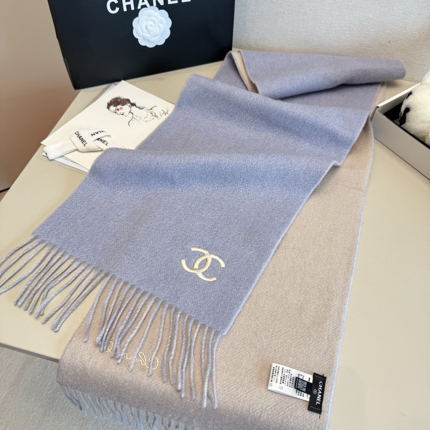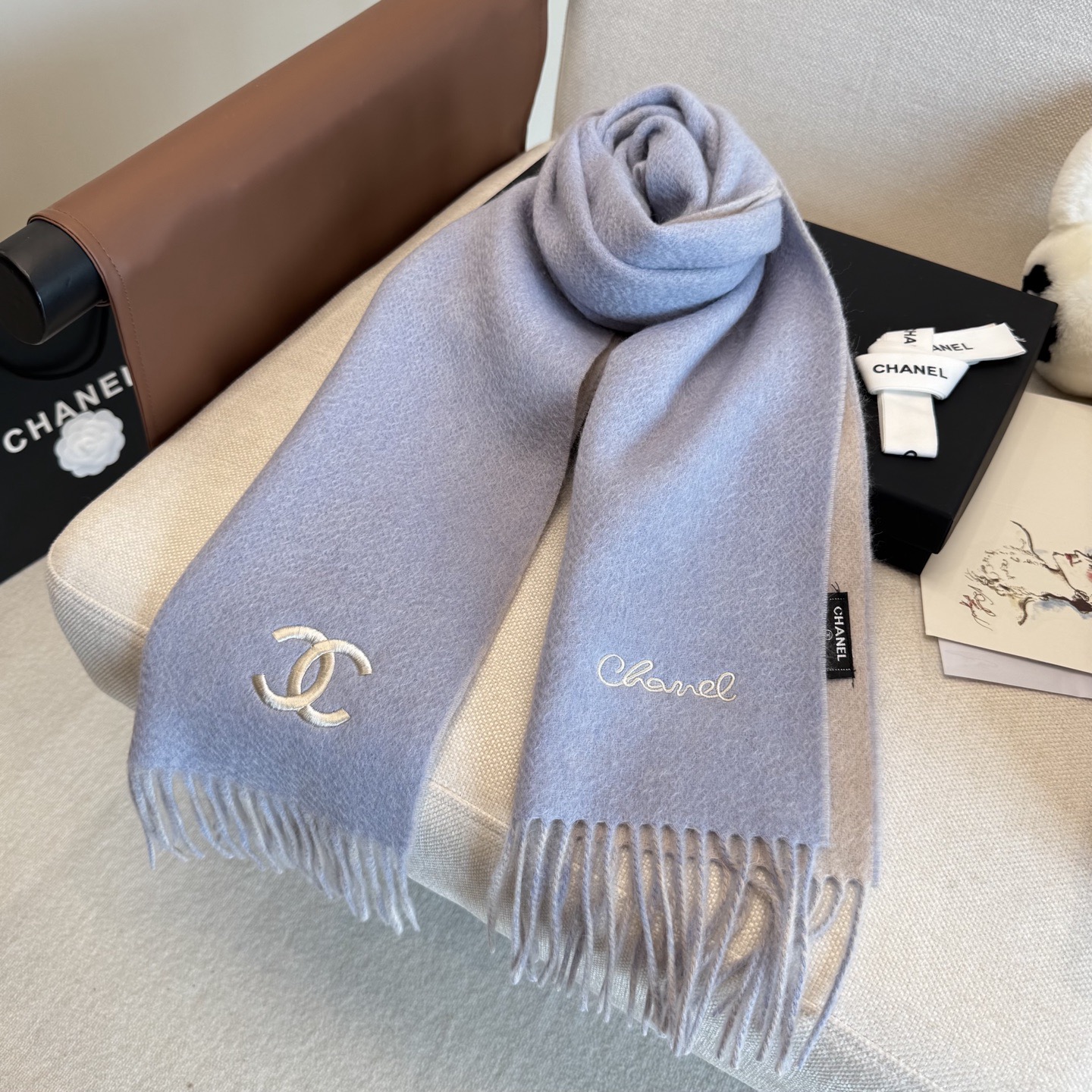 🉐️195  🔥Chanel · 香奈儿难得一见的温柔配色,超级迷恋❗️气质低调恬静又不失优雅❗️】重点推荐 双面配色,一条围巾两种搭配❗️高级舒适时髦气质,简约却又不简单,大牌范十足,超级安利❗️香奶奶这款触动内心的柔美围巾,点睛之笔确又不失美感,成功人士的追求,色彩绝对💯❗️有点独有的仙气,绝对的情侣款不二之选,颜色淡雅,不妖娆❗️规格:35 x 180cm❗️