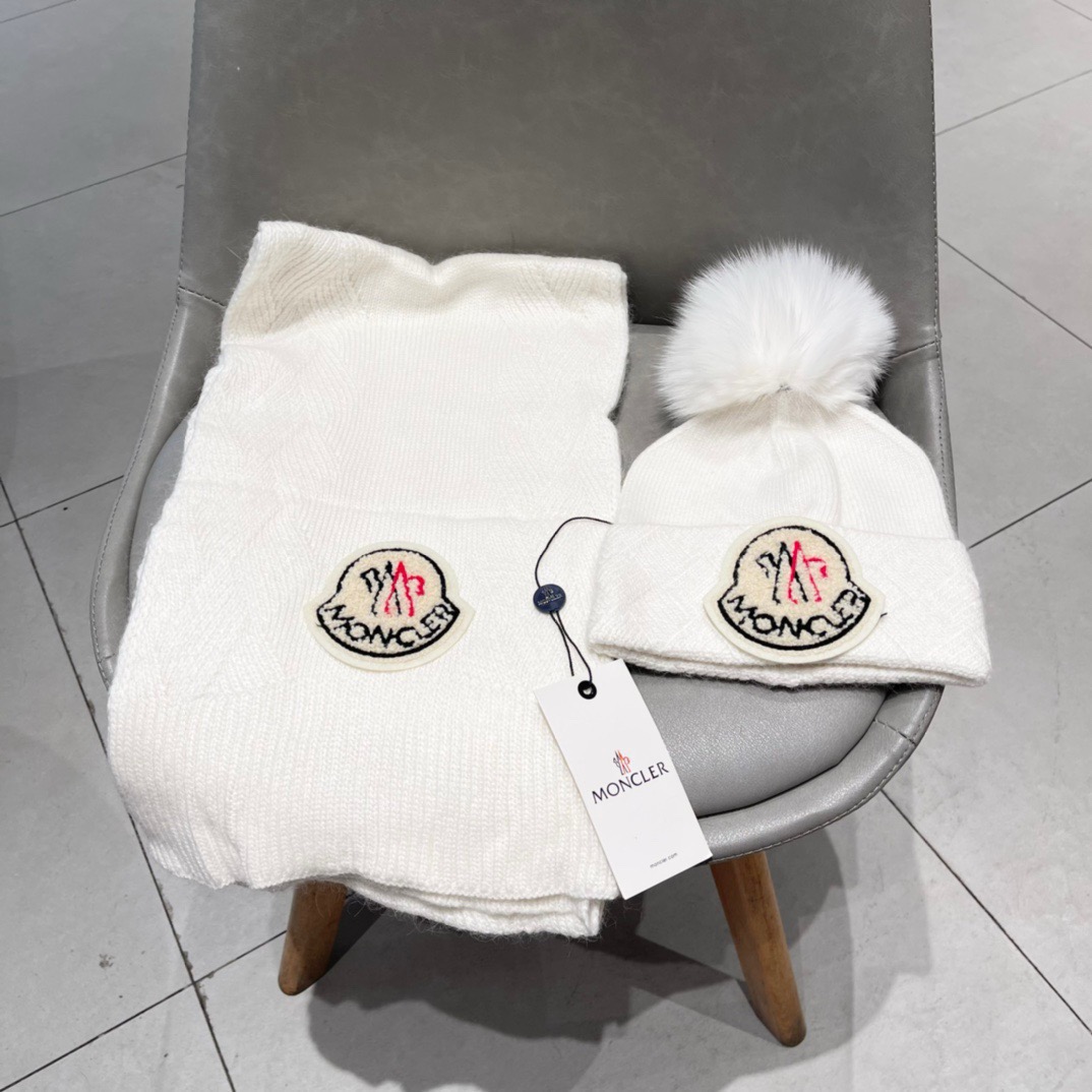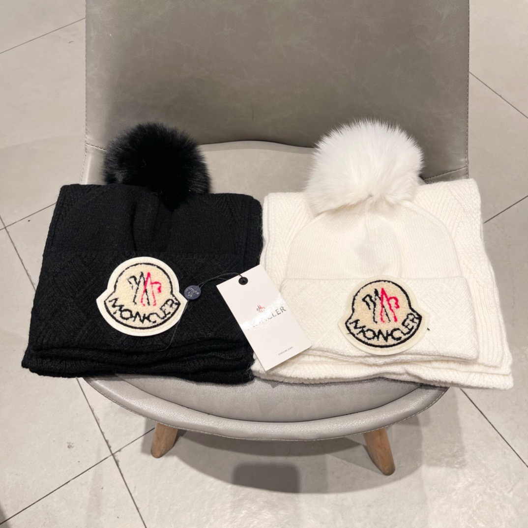 P195 蒙口MONCLER 经典套装帽子!帽子➕围巾!羊绒兔绒品质!暖暖哒超级舒服~冬日小姐姐减龄神器哦~这个冬天你就差这么一套套装帽子啦~又保暖又时尚!男女通用款!可以做情侣款!防伪标签吊卡齐全!多多款式,欢迎选择!!