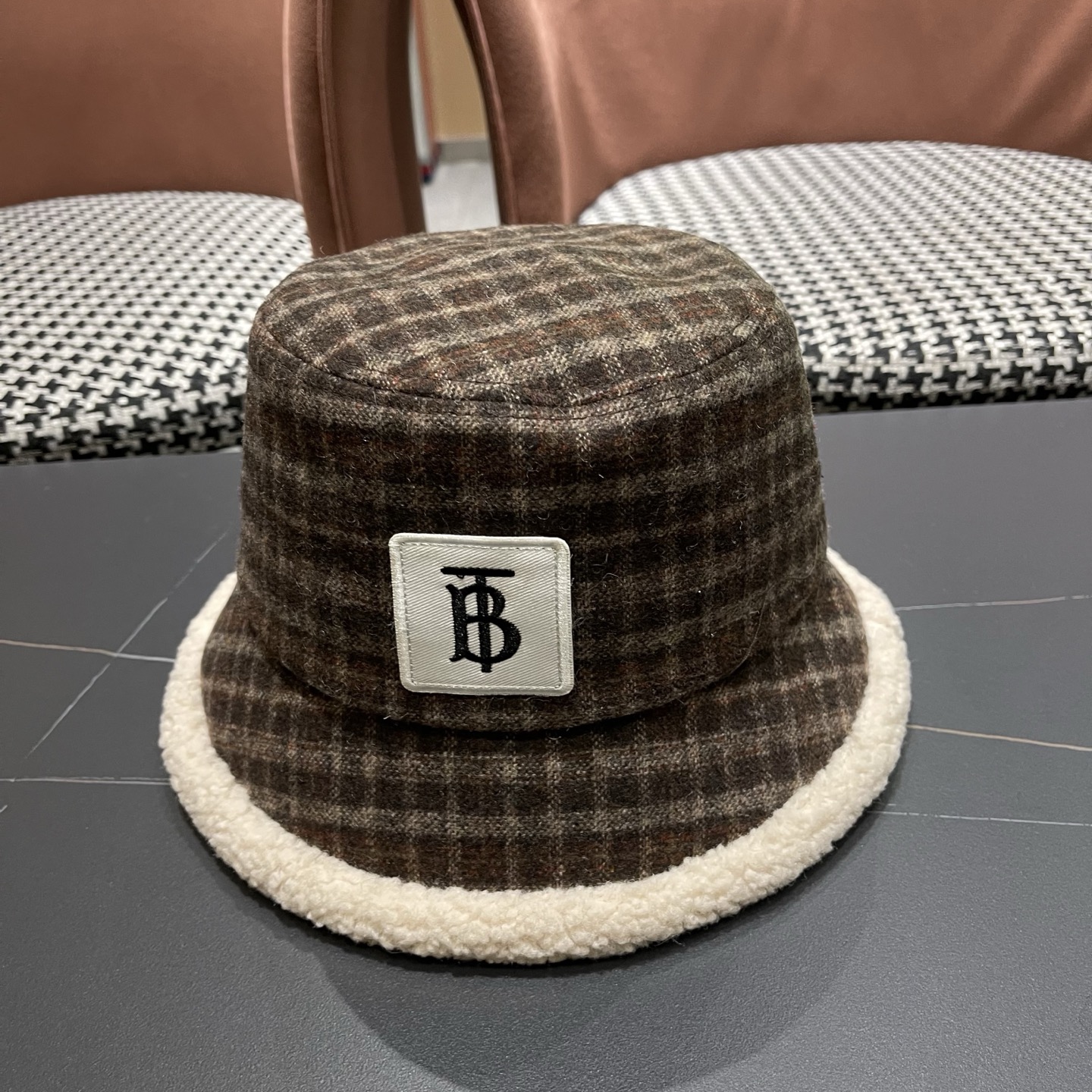P115 BURBERRY巴宝莉猫冬季韩版素颜出街格子羊羔毛水桶盆帽新款保暖渔夫帽子女