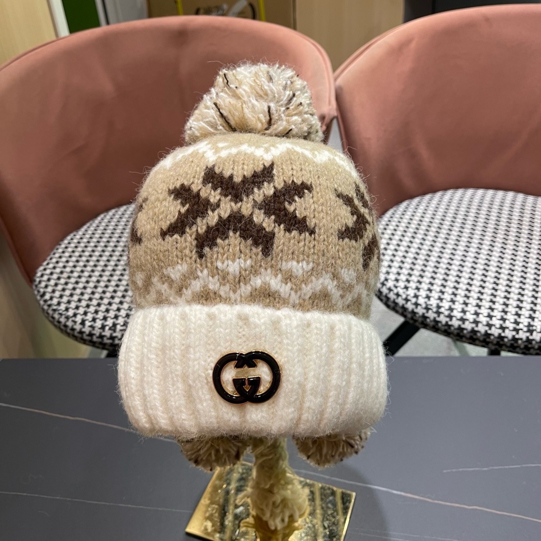 p120 古奇 Guccl帽子女秋冬季加绒加厚针织帽保暖护耳冷帽2025新款包头毛线帽
