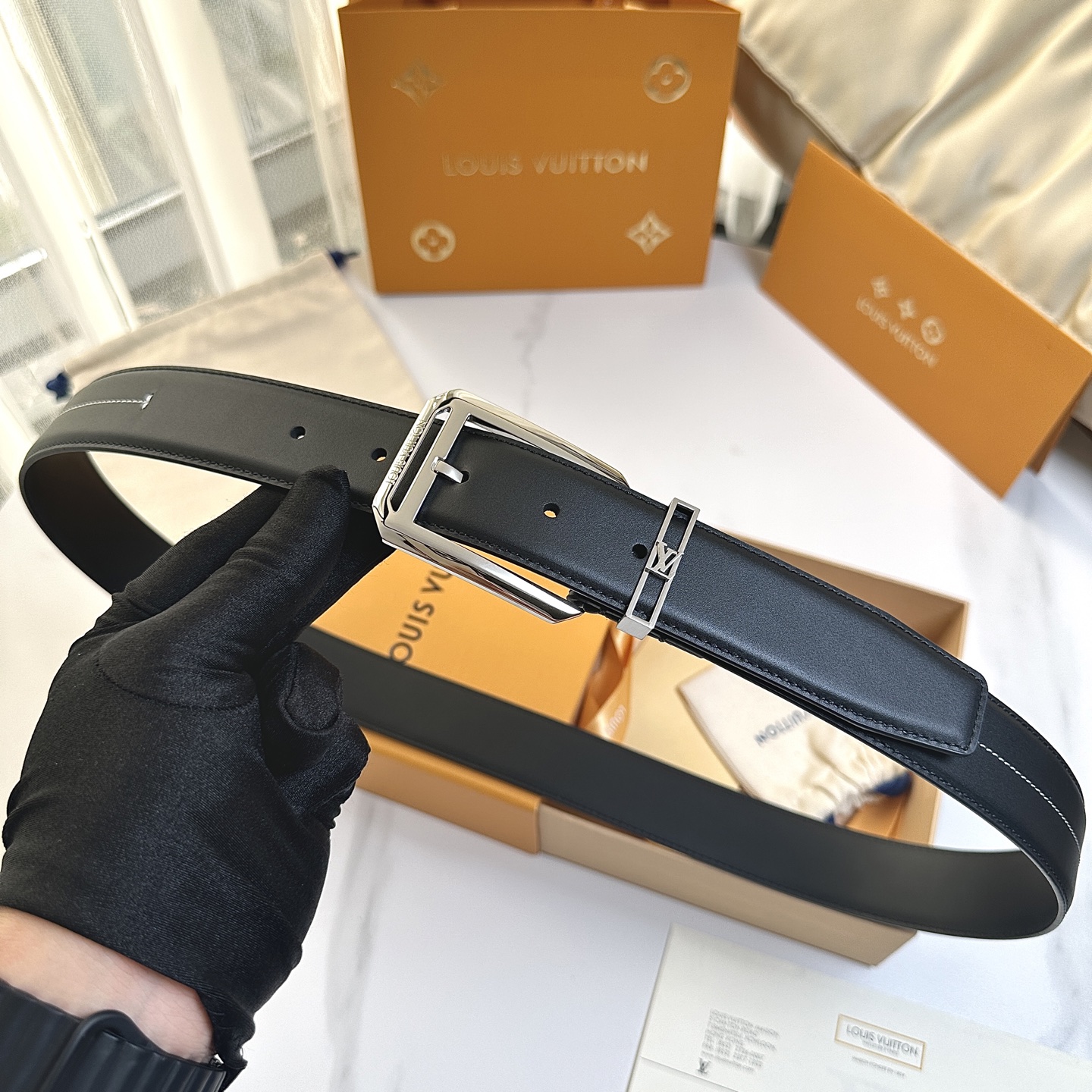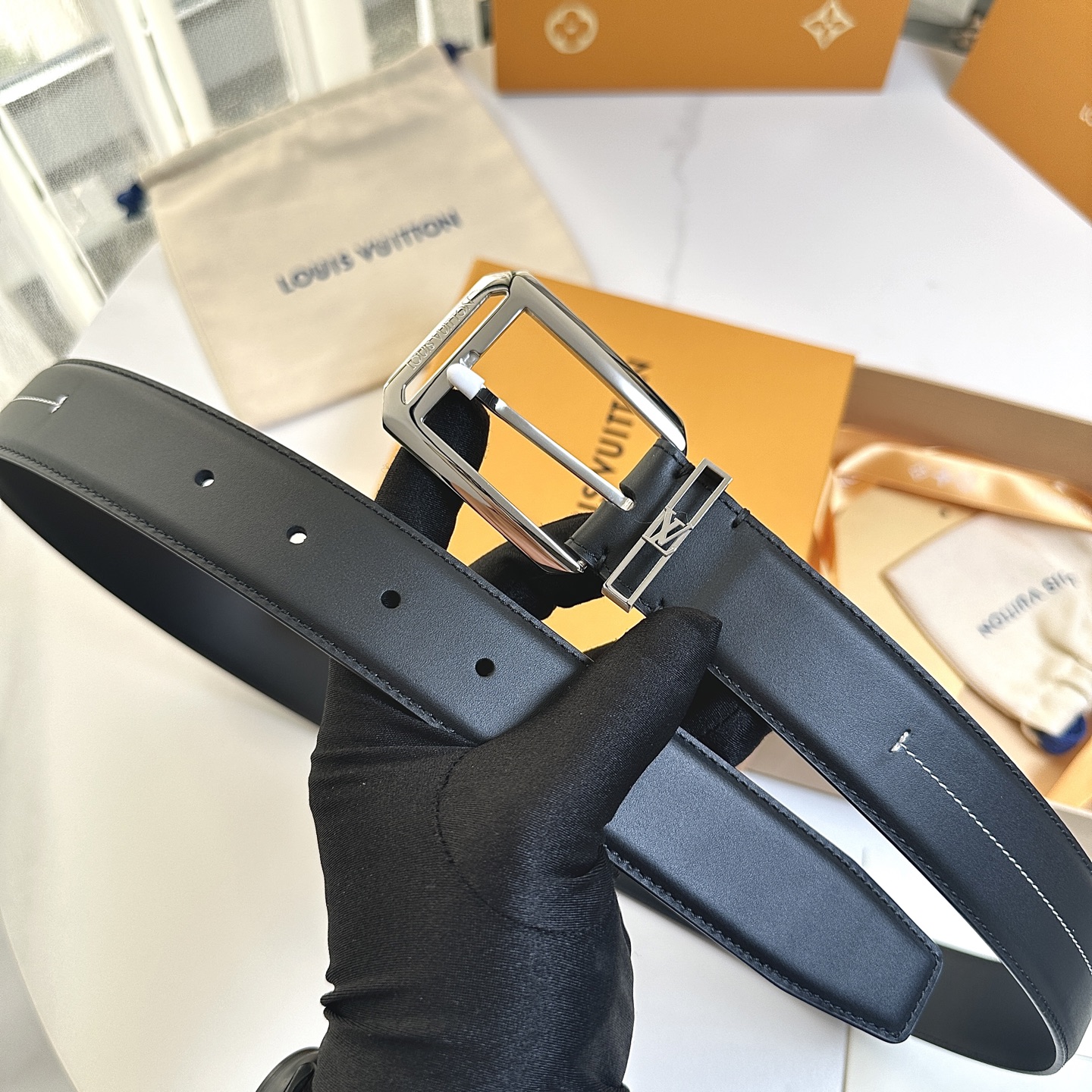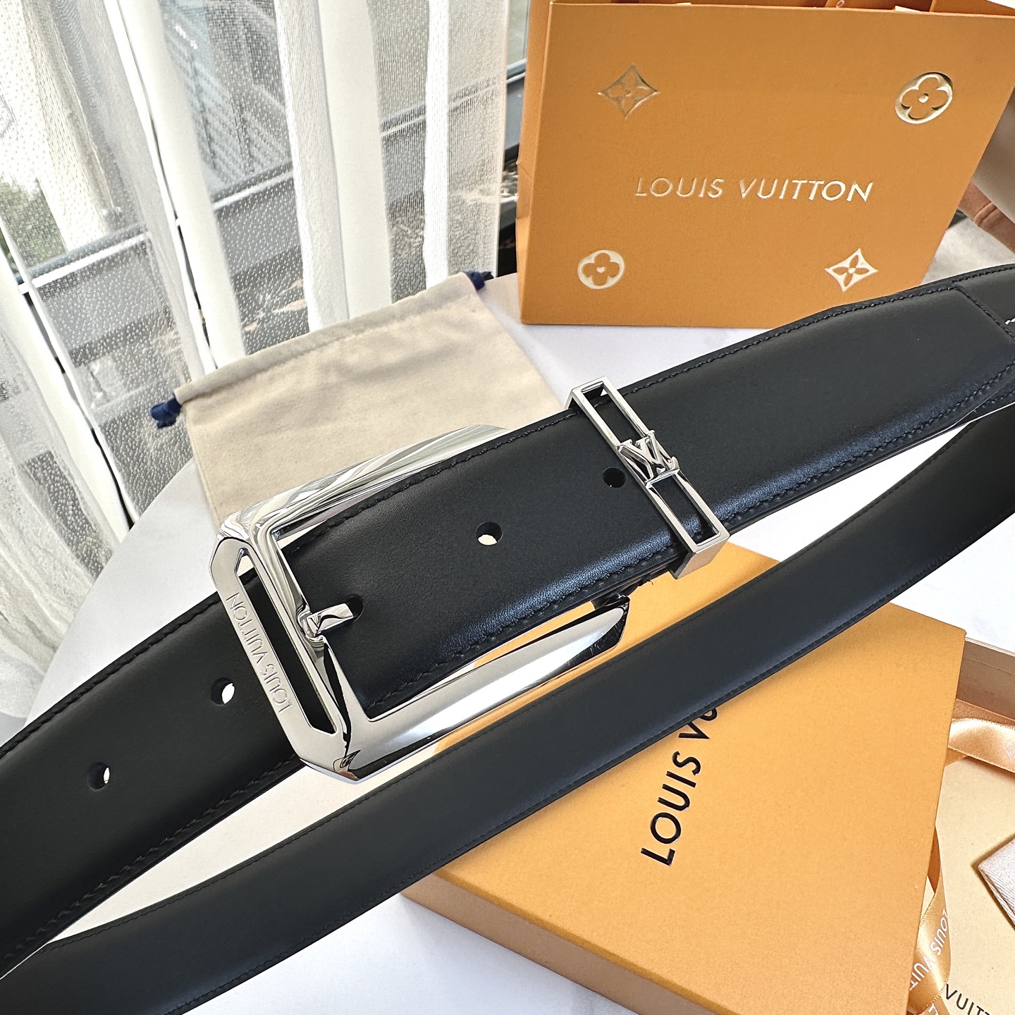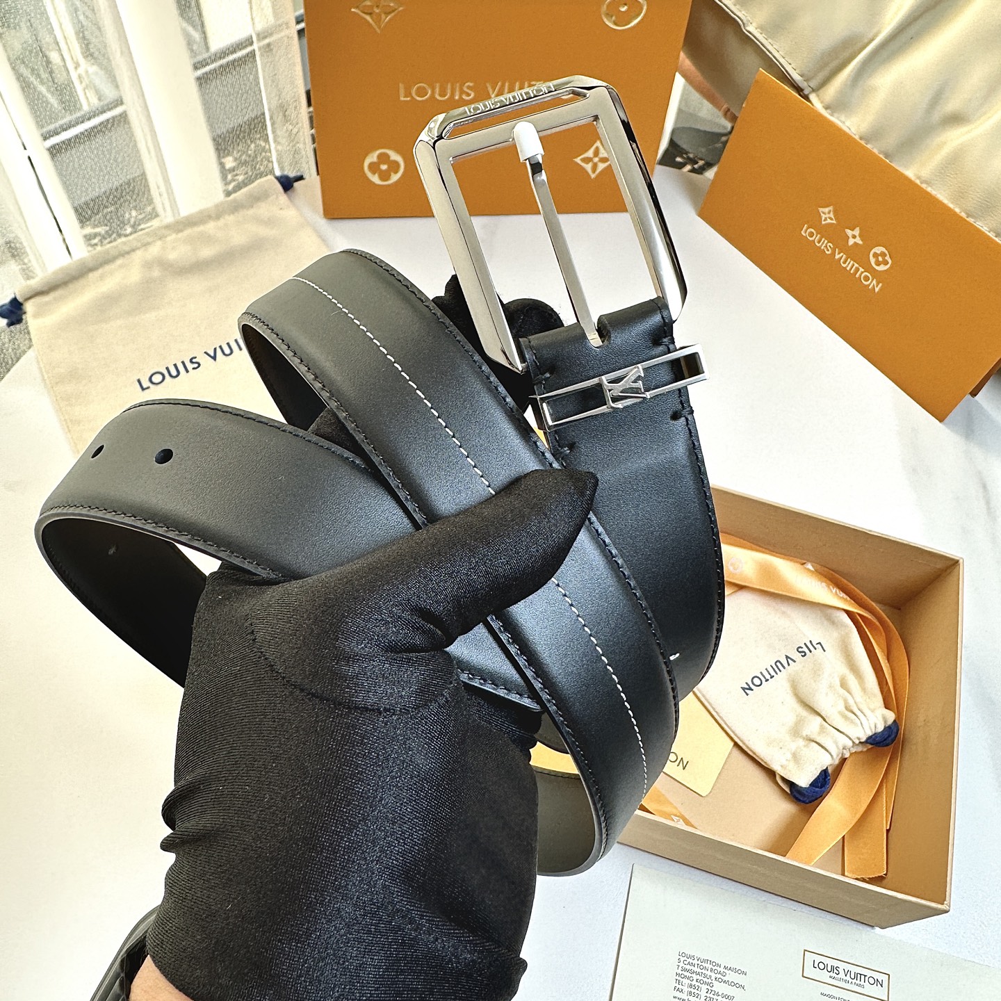 P:150[原版包裝➕1.0】 L0UIS VUITT0N 今季新品 原單腰帶 寬度35毫米 雙面進口小牛皮 尾部獨特的尾巴五金設計 帶身機車縫白色線 線條流暢工整 與黑色皮革形成鮮明對比 彰顯細節和工藝的極致追求 低調百搭款