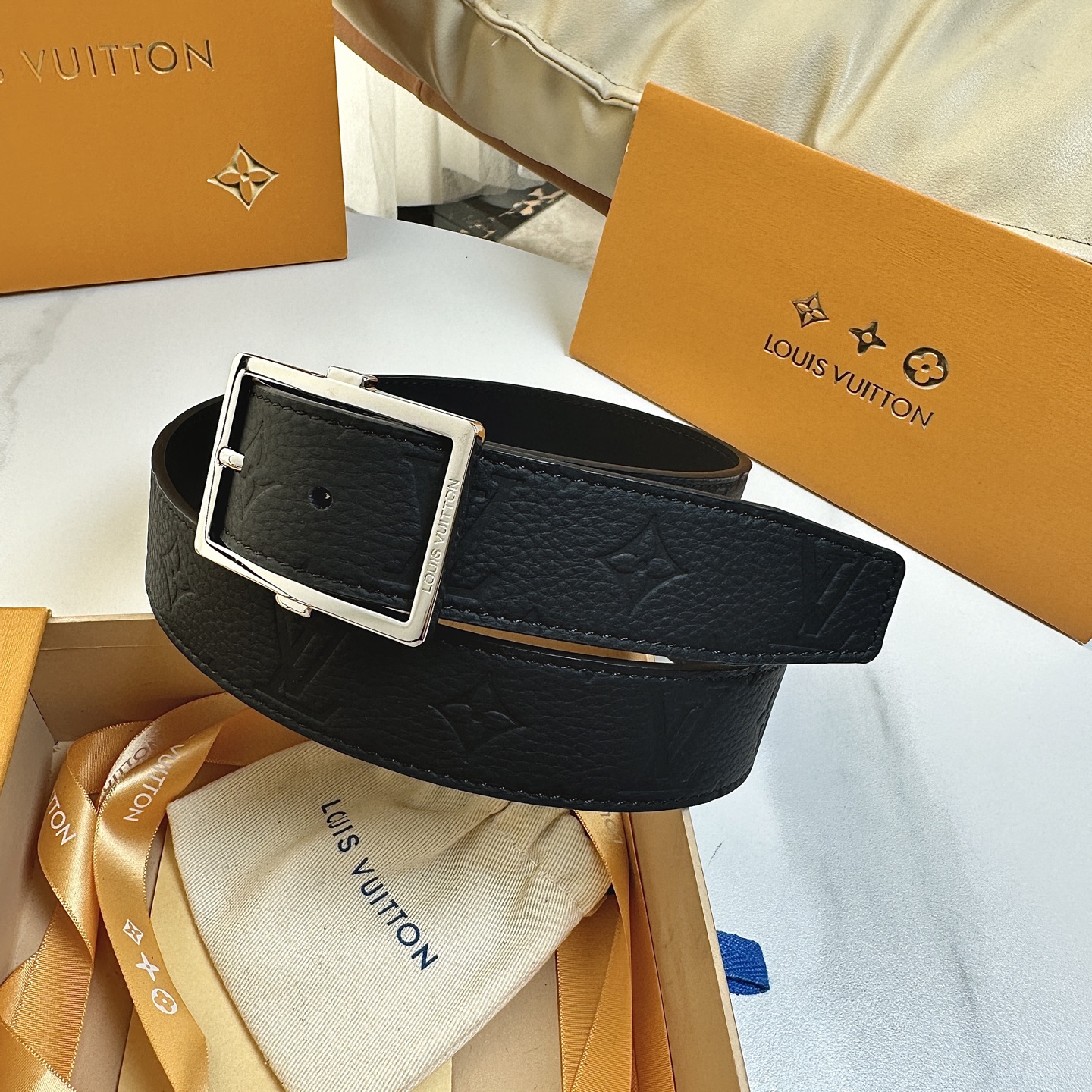 P145【原版包裝➕1.0】 L0UIS VUITT0N 今季新品 驢家男士原單腰帶 寬度35毫米 定制進口雙面頭層荔枝紋小牛皮壓花 搭配全新開模針扣 經久耐用 百搭款