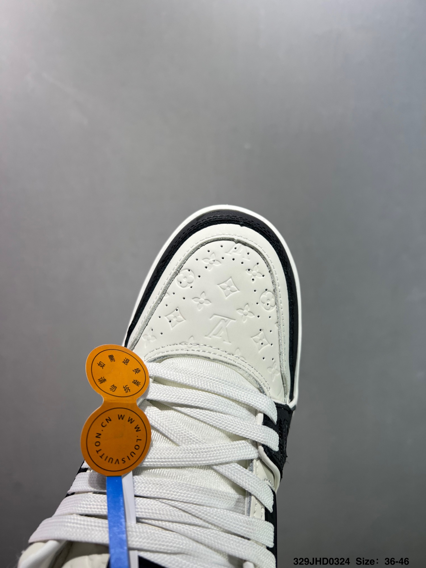 💰130 头层空胶✅路易威登/Louis Vuitton LV路易威登板鞋 新款 LV Trainer最新配色运动鞋 L家 篮球鞋风格运动鞋 该鞋由艺术总监 VIRGIL ABLOH设计 垫脚聚米微料加透气英伦网布 细节原版一致 Size:36-46 ID:329JHD0324