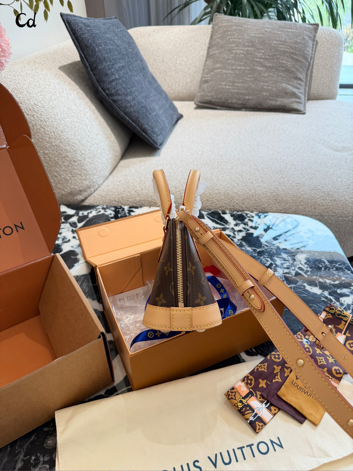 💰260 LV Alma BB老花贝壳 LV Alma BB贝壳包,经典Monogram老花帆布+牛皮饰边,金色五金超精致十。20x18x11cm小巧精致,拉链开合更安全,肩带可调节,手提斜挎都OK!内部超细纤维内衬,日常通勤、休闲都能装下随身物品。自1934年推出,优雅实用,收藏价值满分。