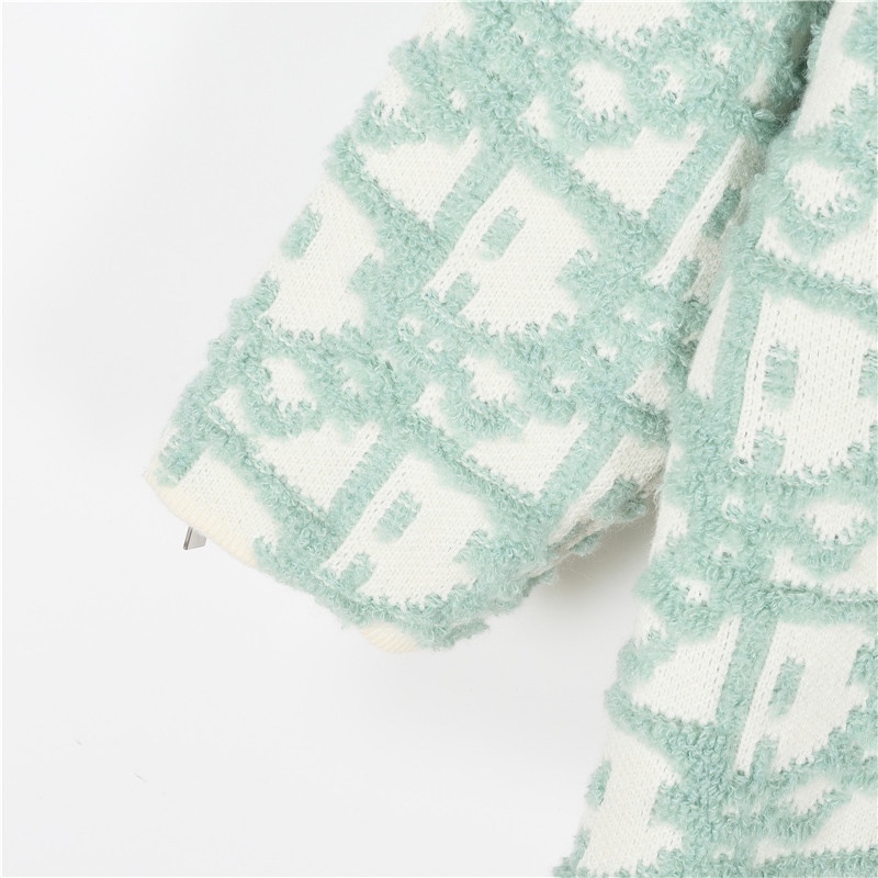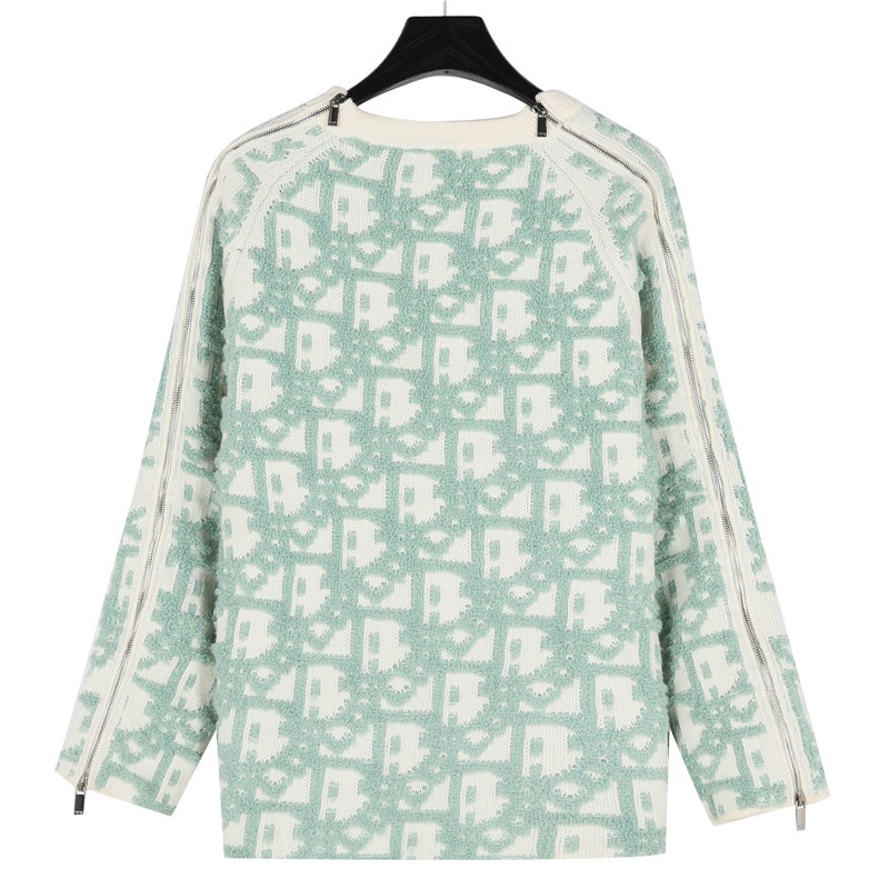 本地自取💰360(支持放店) Dior/迪奥 24Fw 重工满幅CD提花袖肩斜拉链毛衣 重磅上线,周杰伦演唱会哭泣落泪同款毛衣。 白色绵羊毛混纺面料 Oblique 印花这款针织衫以时髦的设计重新演绎 Dior 的经典标识。 采用白色浅绿色绵羊毛混纺面料精心制作,通体饰以经典的 Oblique 印花提升格调。 衣袖采用拉链开合装饰,彰显时尚风格,而罗纹圆领则增添了对比鲜明的质感。 可搭配牛仔裤,打造生动的休闲造型。 通体饰以 Oblique 印花 衣袖饰以拉链开合 对比鲜明的罗纹圆领 69% 绵羊毛,28% 棉,3% 聚酯纤维* 颜色:蓝色,浅绿色 size:S-L