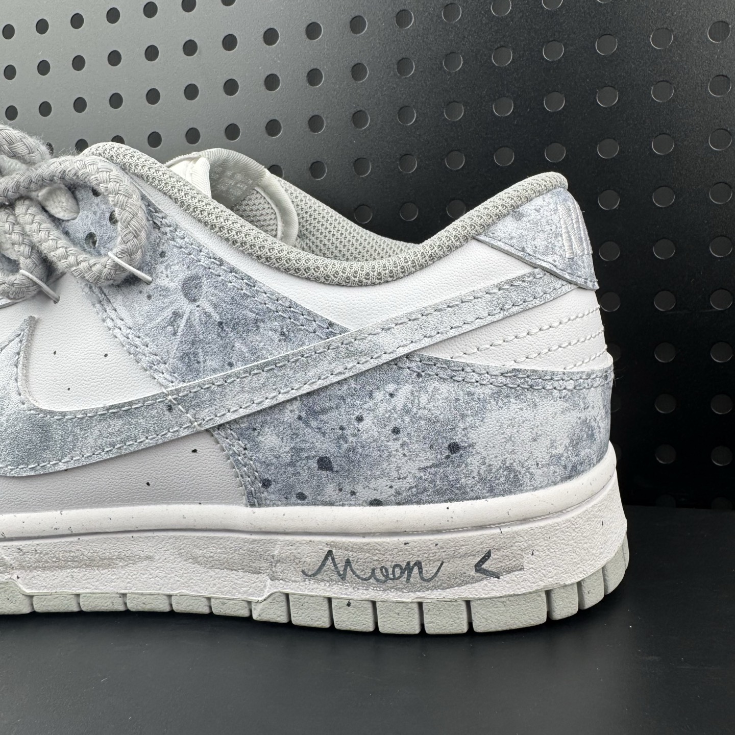 💰240 ✅ 【定制球鞋】Nike Dunk 银霜雾影 泼墨复古风 晕染 解构纪元 舒适百搭 双鞋带 耐磨 低帮 板鞋 男女同款 灰白黑 货号:HF5441-105(Team1483-银霜雾影) 尺码:40-46带半码(08)