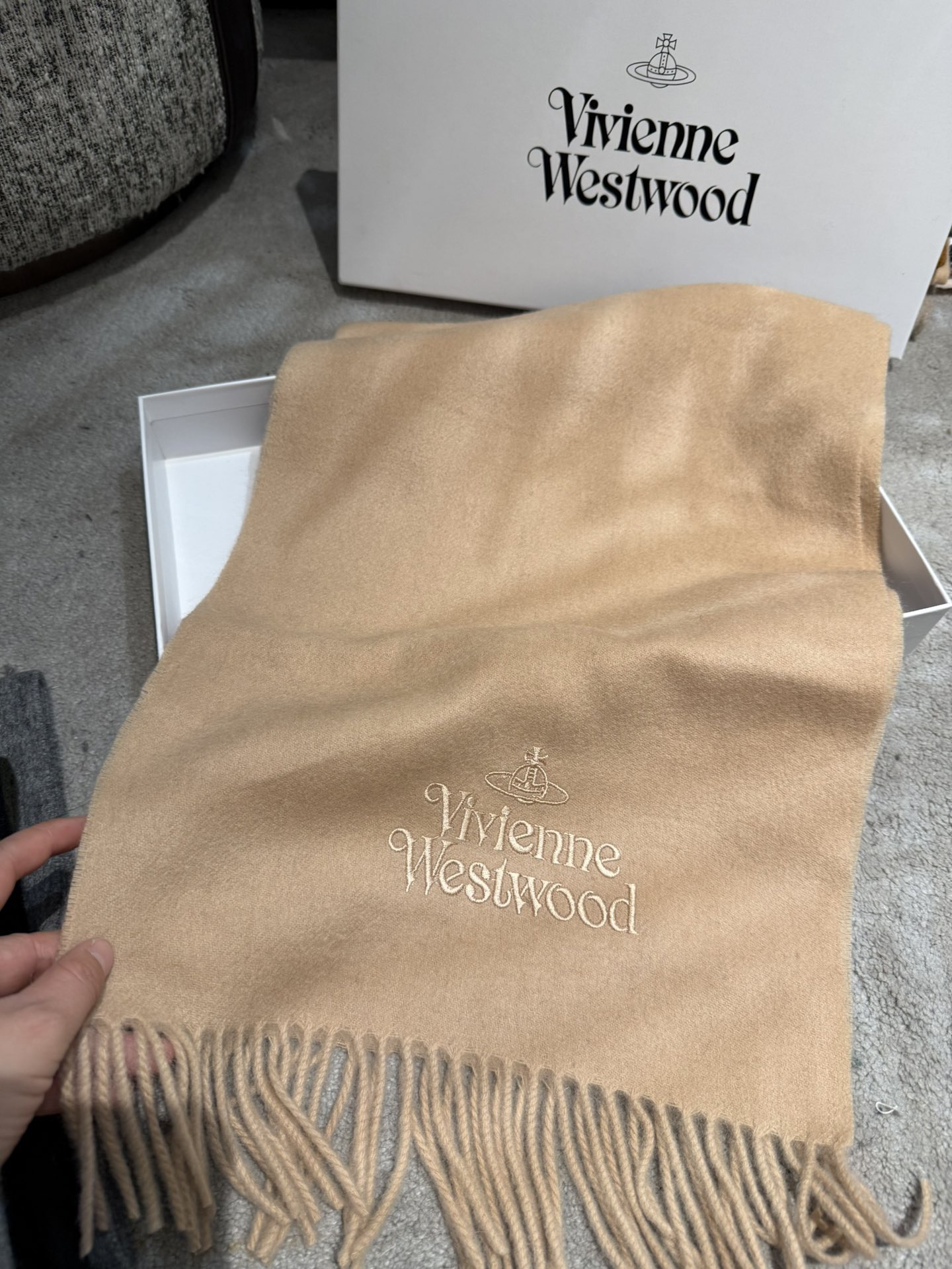 P135 P小红书爆款“Vivienne Westwood”薇薇安西太后羊绒羊毛围巾❗ 西太后 英国时装设计师,时装的朋克之母!时尚潮流引领者,超美的设计!简约大气刺绣Logo‼精致这个款不用担心不好看,因为经典的元素洋气的新设计!赠礼的完美之选,充分展现个性风范。Vivenne Westwood才是最能代表英国人的时尚品牌。面料采用了95%最具张力羊毛,5%羊绒. 尺寸:180*30!.