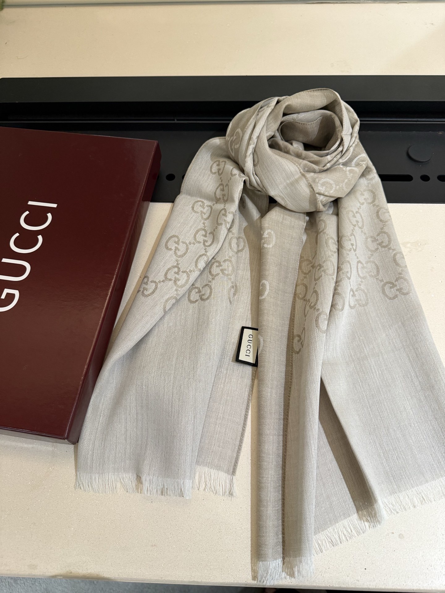 P160 P重磅‼️Gucci经典围巾款,小尺寸G专柜的常青树款。品质极好的,❗️经典双G提花图案风靡了全世界❗️女人的衣柜里面绝对不能少的一件单品,但是你千万别拿某宝廉价的货色来磕碜自己❗️既然选择这种经典披肩,你就一定选择有灵魂的东西❗️精工高密度字体无比清晰 面料为最顶级高原开司米尔羊毛真丝(和专柜一样) 手感柔软丝滑 奢华有质感!这款披肩将真丝与羊毛相混搭,质地柔软而温暖,经典而永不过时。❗️45x180cm!