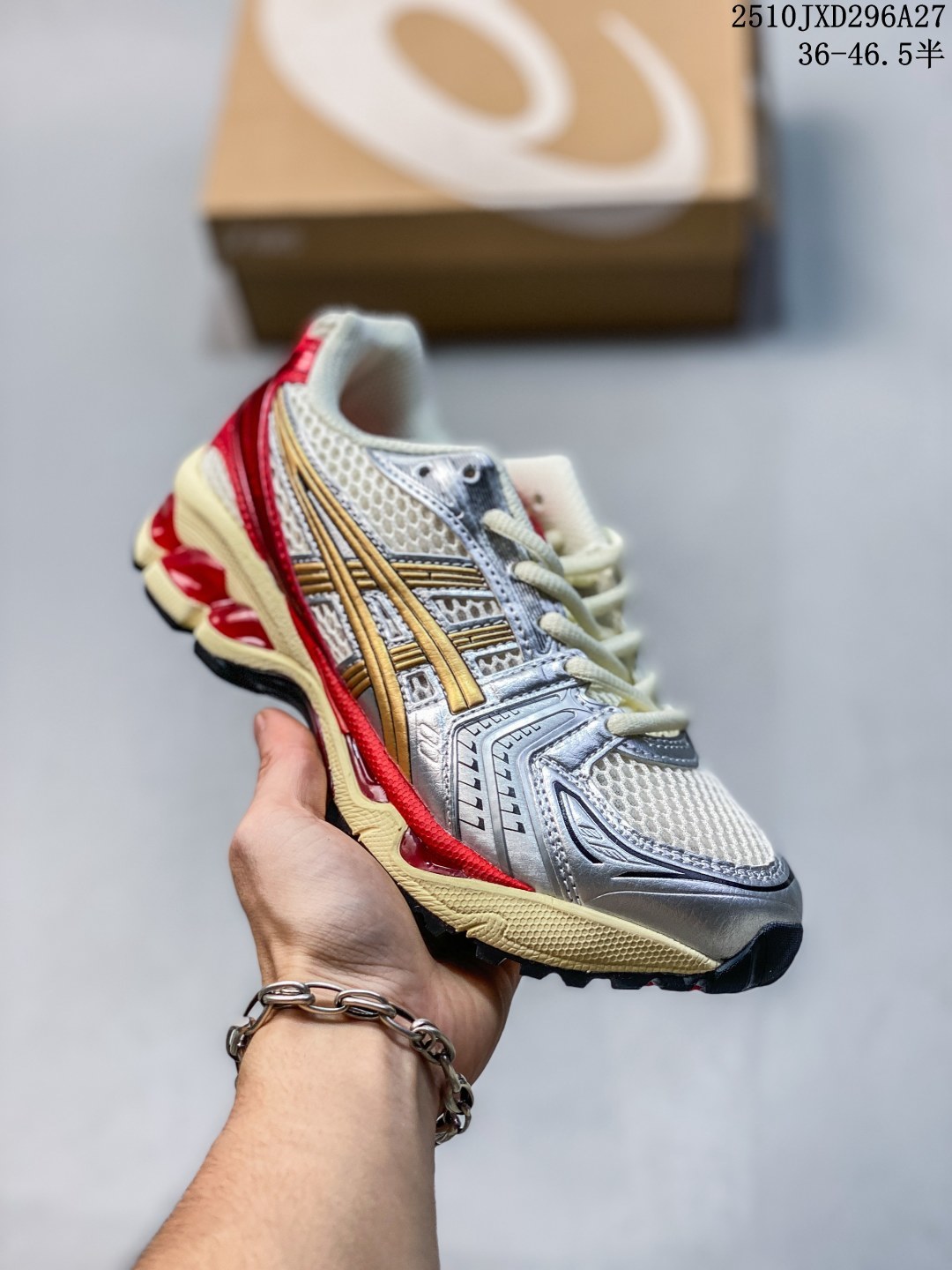 🈴 💰140 公司级带半码! 采用环保太空合成革配合透气网眼布鞋面材质#中底3D可视GEL缓震胶效果#升级EVA全新缓震中底部位科技组合耐磨橡胶外底片❗️13年前经典首度回归,复刻魅力难挡!日本专业跑鞋品牌·亚瑟士/ASICS GEL - KAYANO 14 系列轻量缓震休闲运动跑步鞋 ASICS GEL-KAYANO 14 于2008 年在万众期待中横空出世,设计师 Hidenori Yamashita 以「Flash」一词为灵感,创造出未来感金属色鞋面,改造升级内在性能,由内而外全面革新,为 GEL-KAYANO 家族传承及经典跑鞋文化的延续,创下里程碑式作品。ASICS GEL - KAYANO 14 跑鞋重新诠释了复古的跑步形状,并以其 2000 年代后期的美学理念重新铺装,银色与蓝色的鞋面极为高档.网面铺陈与鞋面、鞋头多处细节位增添了透气性。ASICS GEL - KAYANO 14的鞋后跟部中底上以及多密度耐磨鞋底增加了 GEL 缓震胶,提供高抗冲击性、缓冲性、可保护脚部免受地面冲击的影响,穿着舒适性十足「入手同款」。 XM1028Q935 10JXD296A27