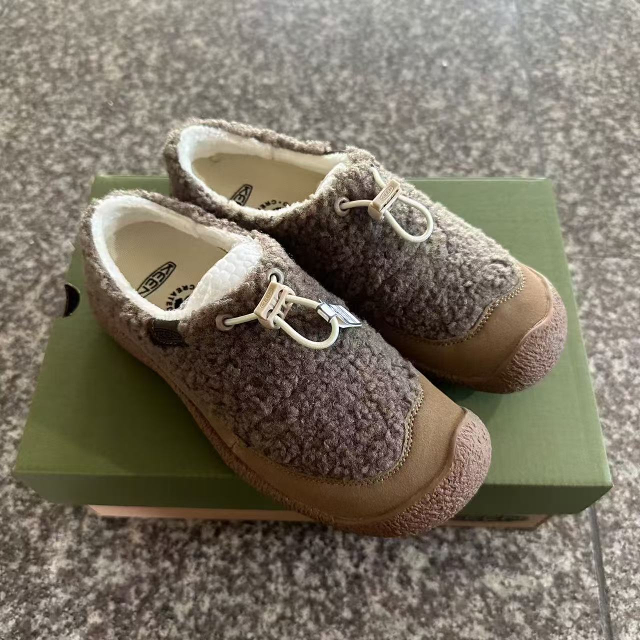 特价💰149 科恩 KEEN Howser 3 SLIDE 冬季户外保暖鞋一脚蹬毛毛鞋小羊蹄 穿一次就会爱上的温暖脚感 高保温性能的羊毛衬里加上耐磨防滑的橡胶外底 打破居家靽和户外靽的界限 你可以穿着它从室内到室外 大底 Size:35 36 37 38 39