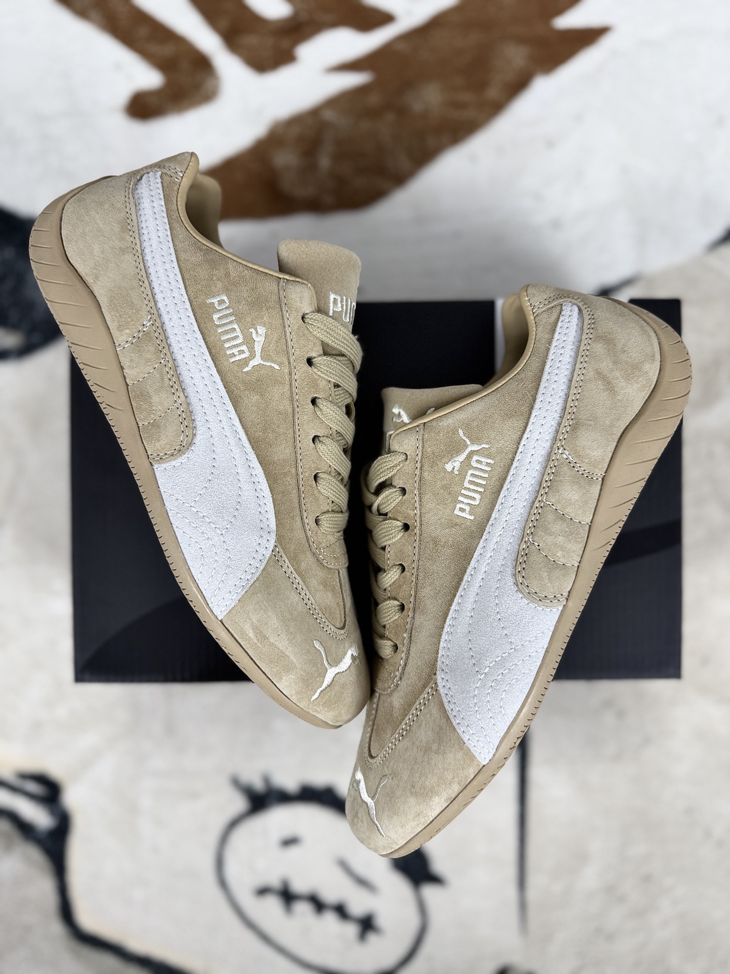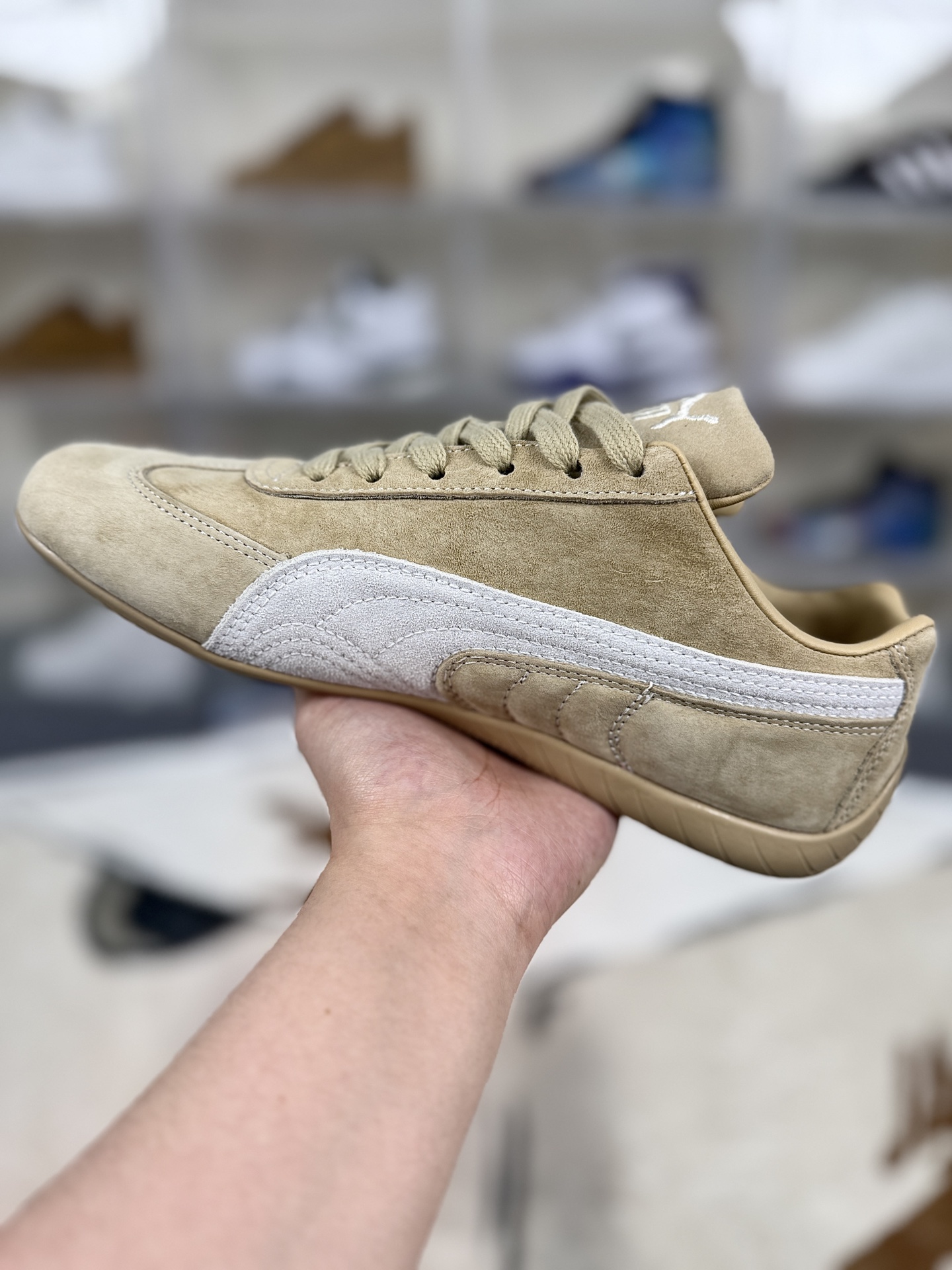 本地💰140 ▪️CH纯原 PUMA彪马 Speedcat 系列 TTF 百搭舒适 薄底 赛车 德训 复古 耐磨 低帮 生活休闲鞋 男女同款 棕褐色 ▪️尺码:35.5-45(35.5 36 36.5 37 37.5 38 38.5 39 40 40.5 41 42 42.5 43 44 44.5 45) ▪️货号:403903-02 ▪️Speedcat OG的设计灵感来源于上世纪90年代的赛车鞋,尤其是F1赛车手的赛道战靴。其流线型的鞋身和充满张力的线条,仿佛一辆低趴极速跑车,让人一眼就能感受到速度与激情。鞋面采用类麂皮和磨砂皮拼接,手感柔软且富有质感。这种材质不仅耐磨、防刮,还具有一定的复古做旧风格,使鞋子更加独特和时尚。鞋头部位绣制了PUMA标志性的美洲狮图案,鞋舌与Formstrip上方则融入了金色Logo,彰显品牌身份。同时,鞋子还采用了立体刺绣和烫金工艺,提升了整体的精致感。Speedcat OG的内里包裹感特别贴合,不会磨脚也不会闷热。其采用了NITRO氮气科技中底,将氮气注入超临界发泡材料,柔软舒适且能量反馈好,走起来脚底有Q弹的反馈感。鞋底采用了橡胶材质,并设计了防滑纹路,大大提升了抓地力。无论是走在湿滑的地面上还是进行剧烈运动时,都能保持稳定性和安全性。Speedcat OG自推出以来就备受明星青睐,YG小公主ROSÉ、欧美时尚巨星Bella Hadid和Dua Lipa等人都曾穿着这款鞋子亮相。明星效应进一步提升了Speedcat OG的知名度和影响力。