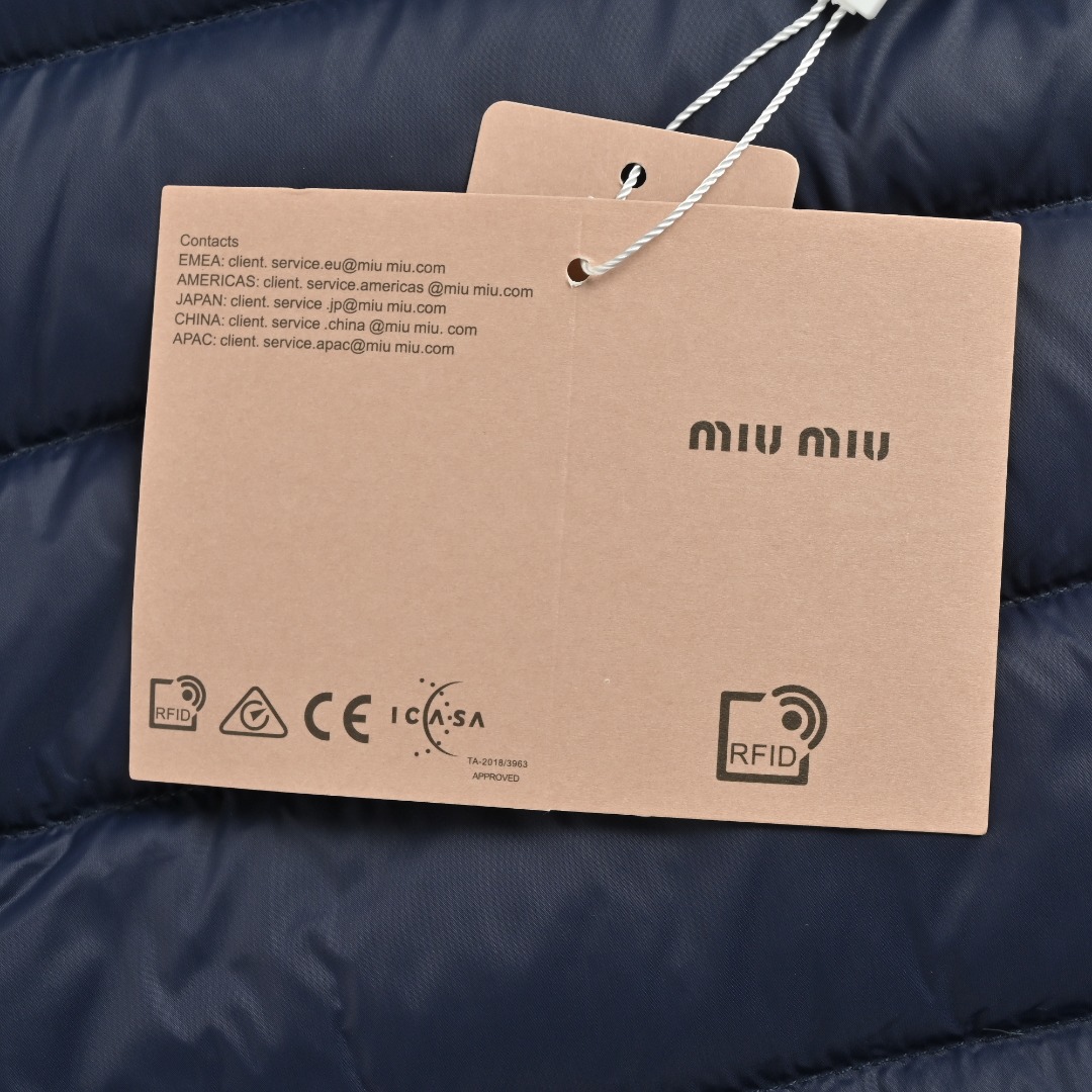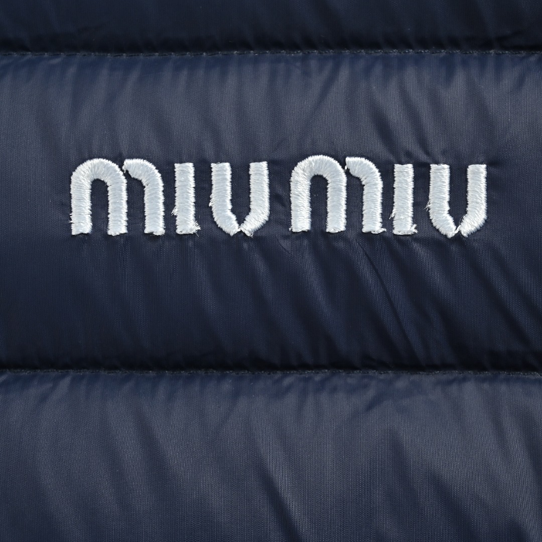 本地自取💰380 MIU MIU缪缪MM 字母绣排骨羽绒马甲 选用高支数的聚酰胺纤维打造的高端尼龙面料,以出色的抗拉强度和耐磨性能著称,其良好柔韧性使面料不易起皱,长久保持挺括有型。紧密的织法有效阻挡冷风侵袭,锁住羽绒层产生的暖空气。高密度尼龙表面形成一定的荷叶效应,小水滴不易渗透,保持内部干爽,有效提升羽绒使用寿命。 采用90国标高品质羽绒,充绒量达到了140克,蓬松度高、保暖性强,轻盈无负担,轻松应对寒冷天气。 徽标采用进口机刺绣工艺,使用先进的计算机控制系统和精密的机械部件,实现mimiu刺绣作业,精度高、线条流畅且细腻。 Size:46 48 50 52