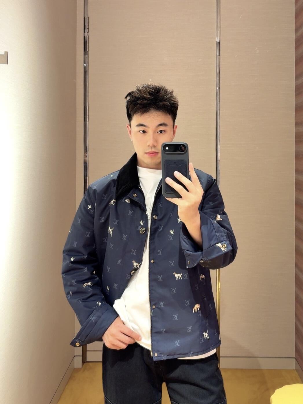 LOUIS VUITTON LV 动物满印灯芯绒翻领夹克外套 上身效果#