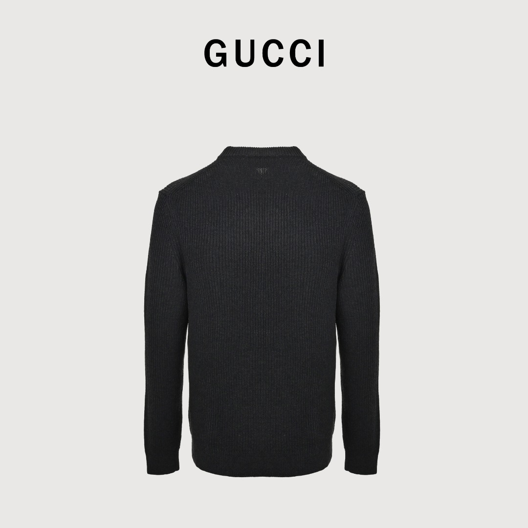 本地自取 💰260 Gucci/古驰 25Fw 提花字母粗针毛衣 面料选用羊毛山羊绒混纺而成,触感柔软,保暖性能良好,罗纹针织织法赋予了毛衣良好的弹性和竖状的纹理,深灰色与黑色的纱线混纺,更显质感层次,通过高针数细针距织机,结合内部纱线井井有条的走向,浮线被巧妙的编织收纳,几乎无多余的线头杂乱,每一个图案字母色彩的切换与织针毫秒不差的同步,形成精致的字母LOGO提花饰于胸口处,黑灰搭配低调而不是辨识度 Size:S-XL