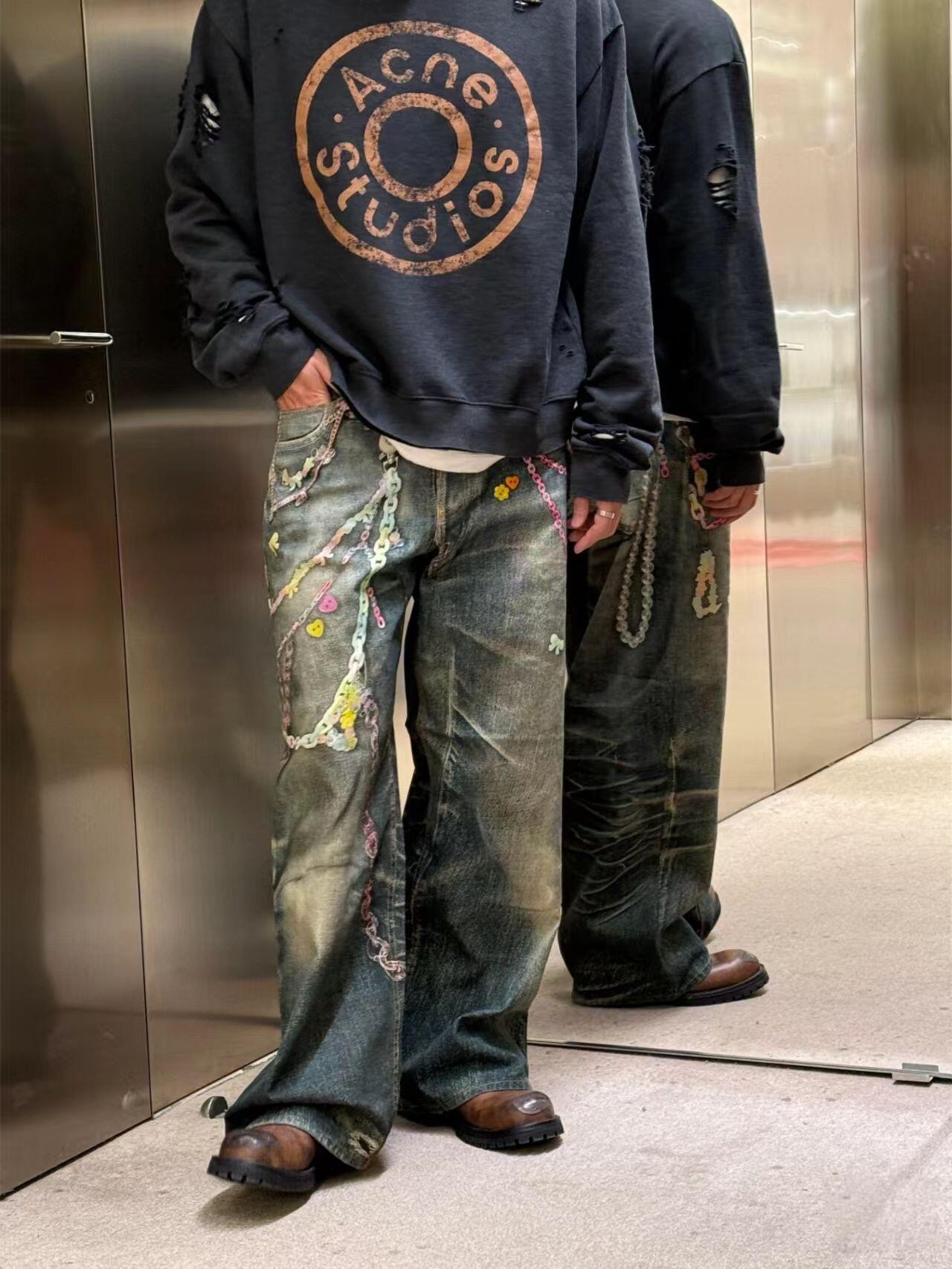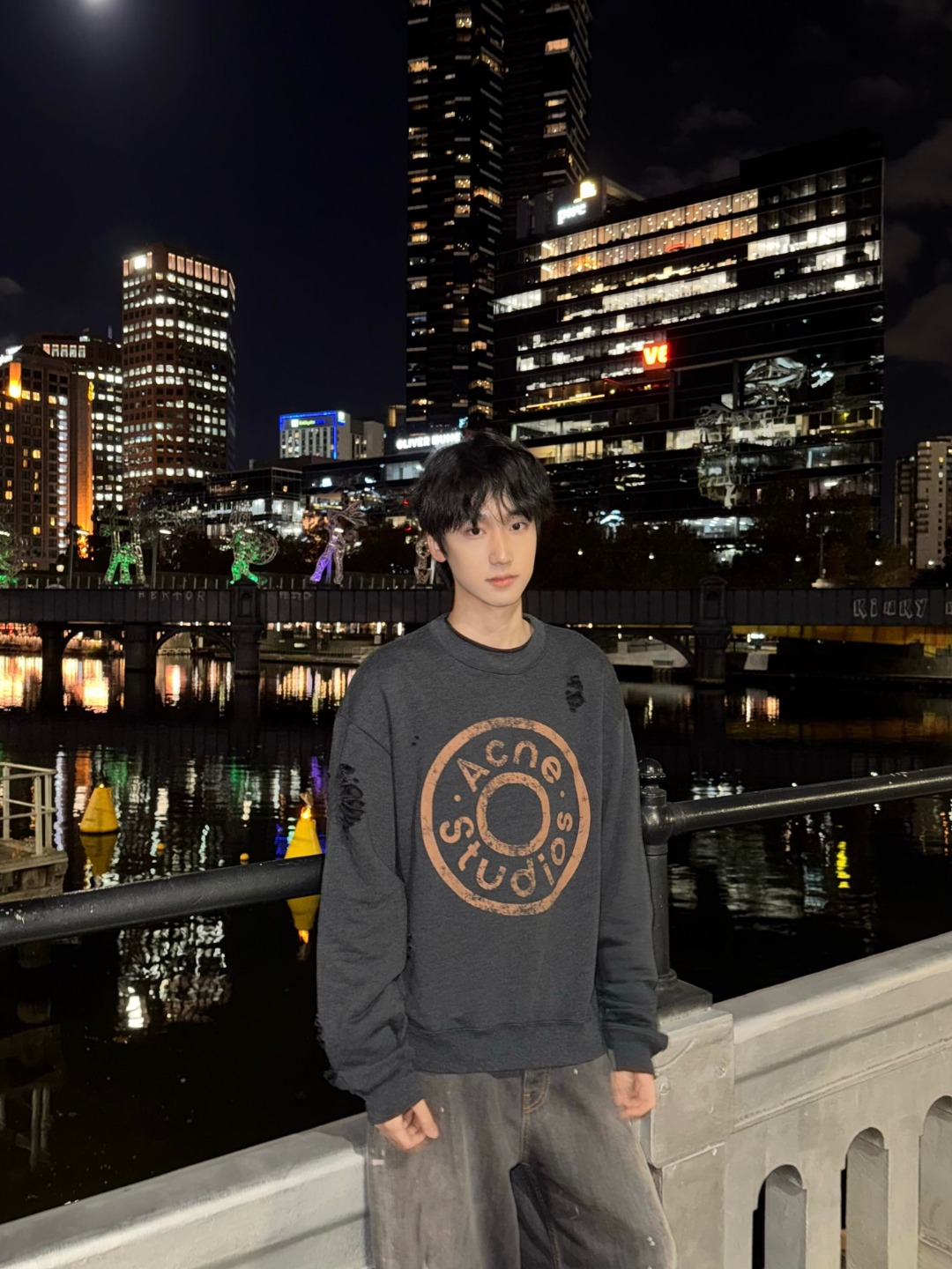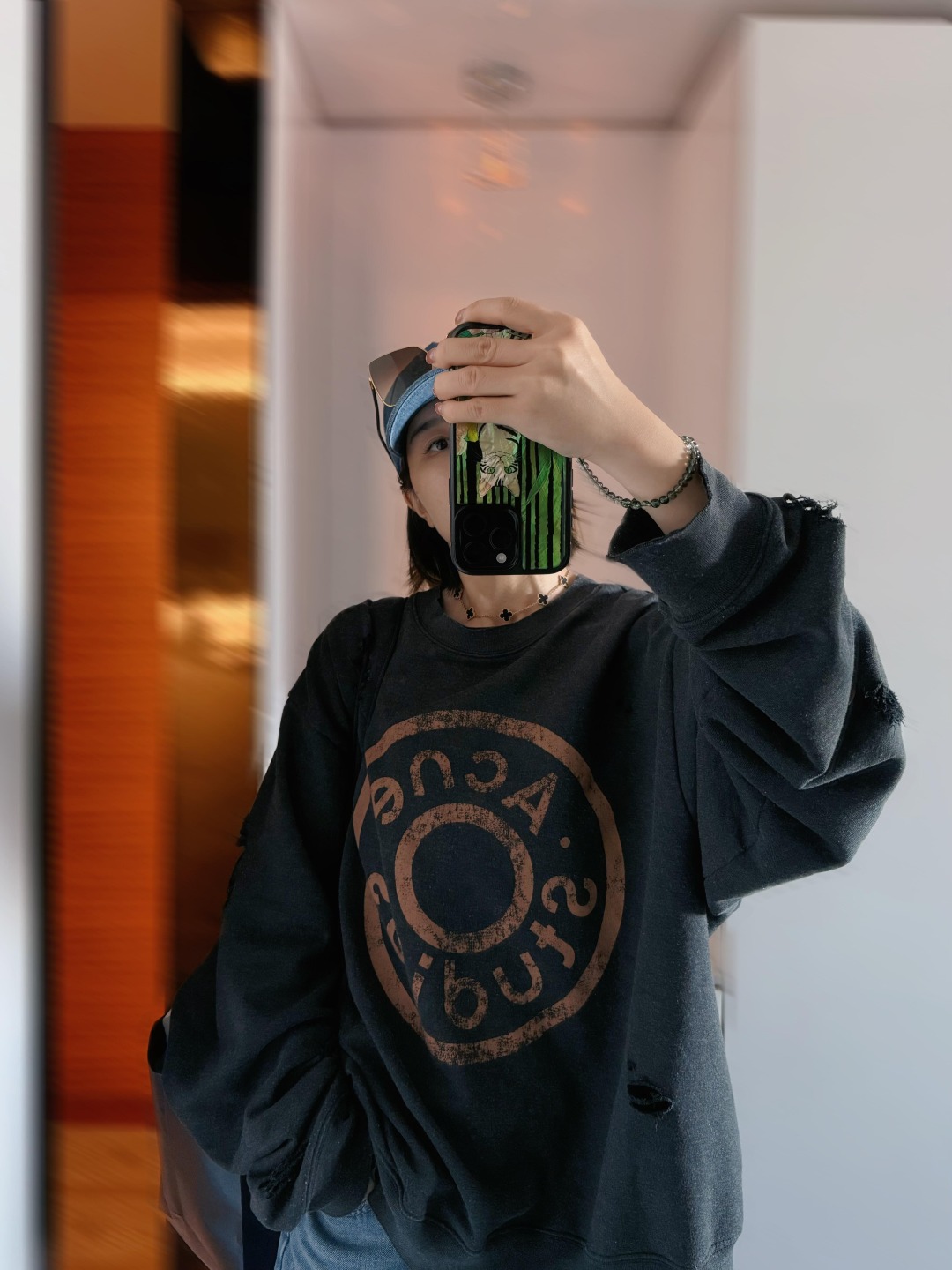 Acne Studios 斑驳圆环破洞圆领卫衣 上身效果#