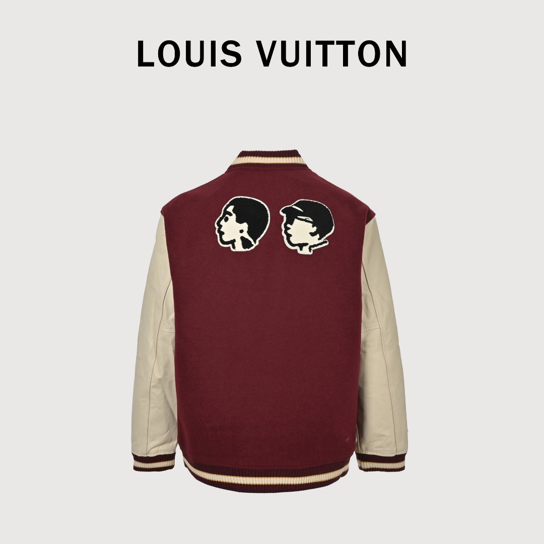 本地自取💰850 Louis Vuitton 路易威登 LV 25FW Nigo联名蝎子拼皮棒球服外套 独家定织定染900G澳洲纯羊毛面料 真牛皮横纹路拼接袖子 配套羊毛撞色罗纹 定做贴布徽章刺绣 Nigo独家五金饰品开模定做 内里复合绗棉缝制 重工单品 独家制造 尺码:50 52 54 56