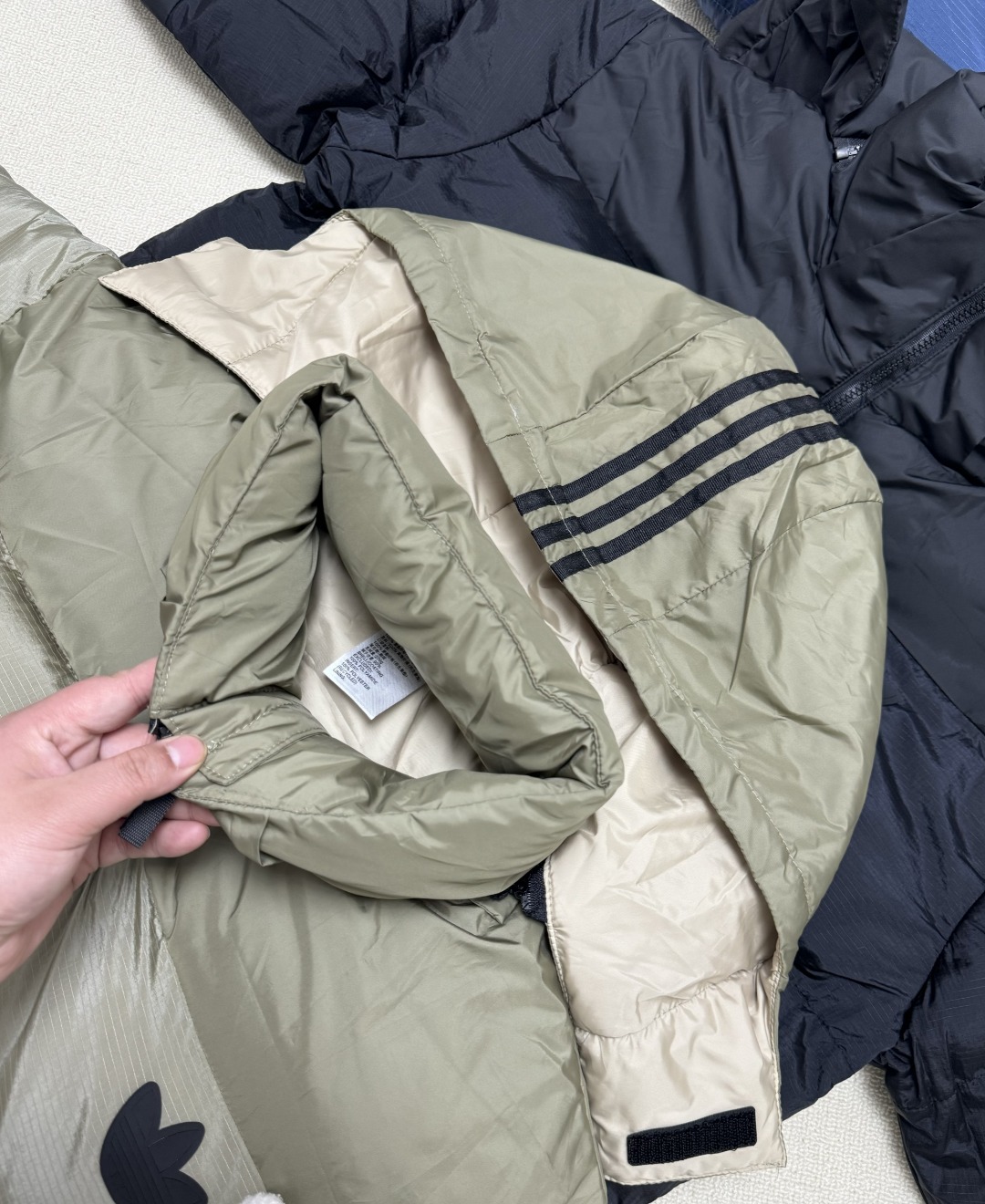P200💰 ❄️入冬刚需!Adidas三叶草羽绒棉服,暖到犯规还巨时髦! 怕羽绒服太厚重?这件Adidas三叶草拼接羽绒棉服给你“轻暖潮”三重体验! 三款配色闭眼挑: • 卡其拼接款,复古感拉满,搭卫衣牛仔裤就是美式街头靓仔; • 深蓝款沉稳又高级,上班逛街都能hold住; • 经典黑款百搭到天际,什么风格都能无缝衔接~ 连帽设计防风又显脸小,棉填充保暖不压身,日常通勤、周末遛弯穿它就对了!胸前低调三叶草标,细节处藏满质感,穿上它,在寒风里也能潮得毫不费力🔥 别让臃肿毁了你的冬日造型,这件“保暖时髦二合一”的棉服,现在不冲等着挨冻吗?