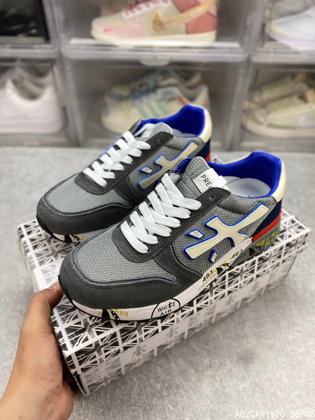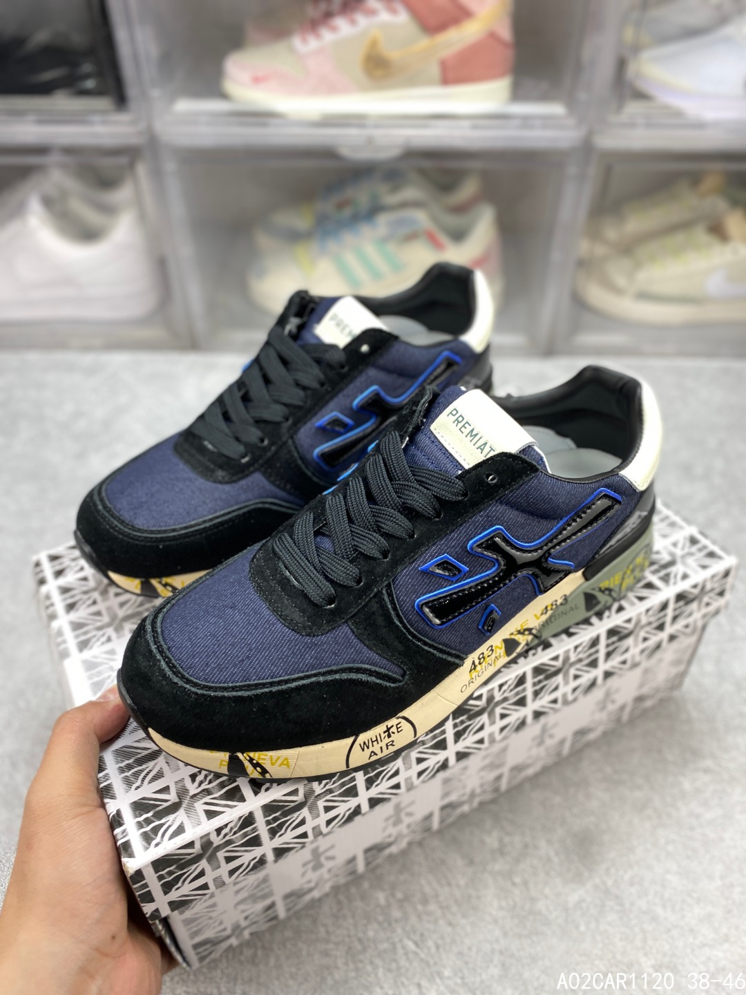 🈴️一 💰150 意大利鞋履品牌·普瑞米亚达 Premiata 低帮百搭休闲鞋 依据国际高标准制造 原单小白鞋 木字男鞋潮复古反绒皮运动休闲鞋木字鞋 鞋子简单大方 手感出众 舒适好穿又百搭 鞋子整体的外观颜值高 鞋面采用的是两种不同的材质面料拼接 鞋底侧边印了很多复古潮流印刷 是比较有个性特色的一款 鞋面材质是采用的牛反绒+牛津布+头层牛皮制作而成 鞋底材质是天然橡胶 大花纹设计防滑减震又耐磨 它的鞋垫都是头层猪皮 普瑞米亚达复古运动鞋真的又好看又好穿 很好搭配衣服 #A02CAR1120 38-46