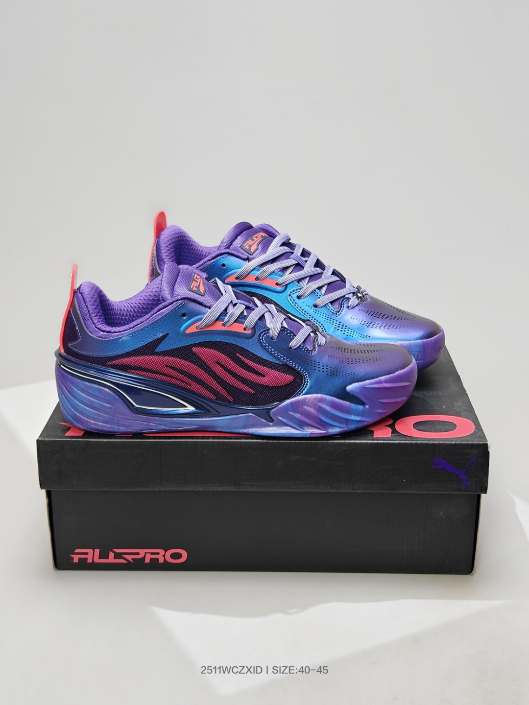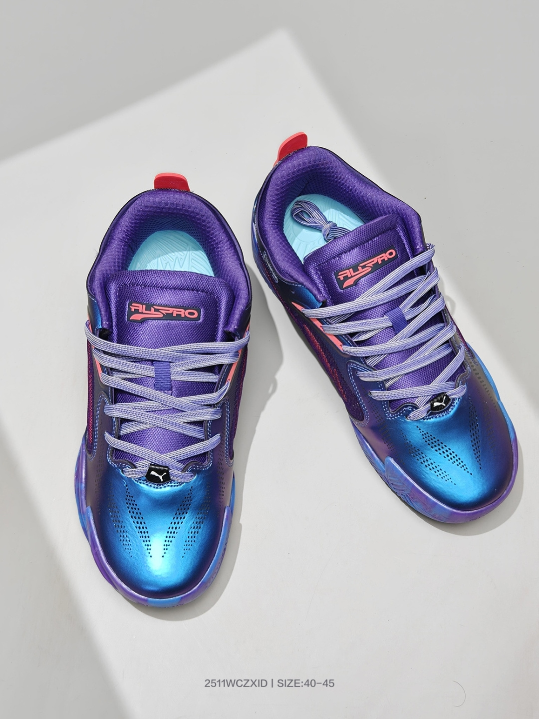 💰145 彪马PUMA All-Pro Nitro Team Puma板鞋简约时尚低帮拼接厚底舒适耐磨篮球鞋 货号:311261 01 复合材料的应用,提供了出色的包裹锁定表现。系带系统也做了升级处理,更新了系带锁定方式,锁定范围要比All Pro更加全面,能适配不同脚型。舒适度直接拉满,是目前PUMA篮球鞋里脚感最澎湃的,可能没有之一。 性能反馈出众,移动时能减少17%的能量损失。 码数:40 41 42 43 44 45 编号:2511WCZXID