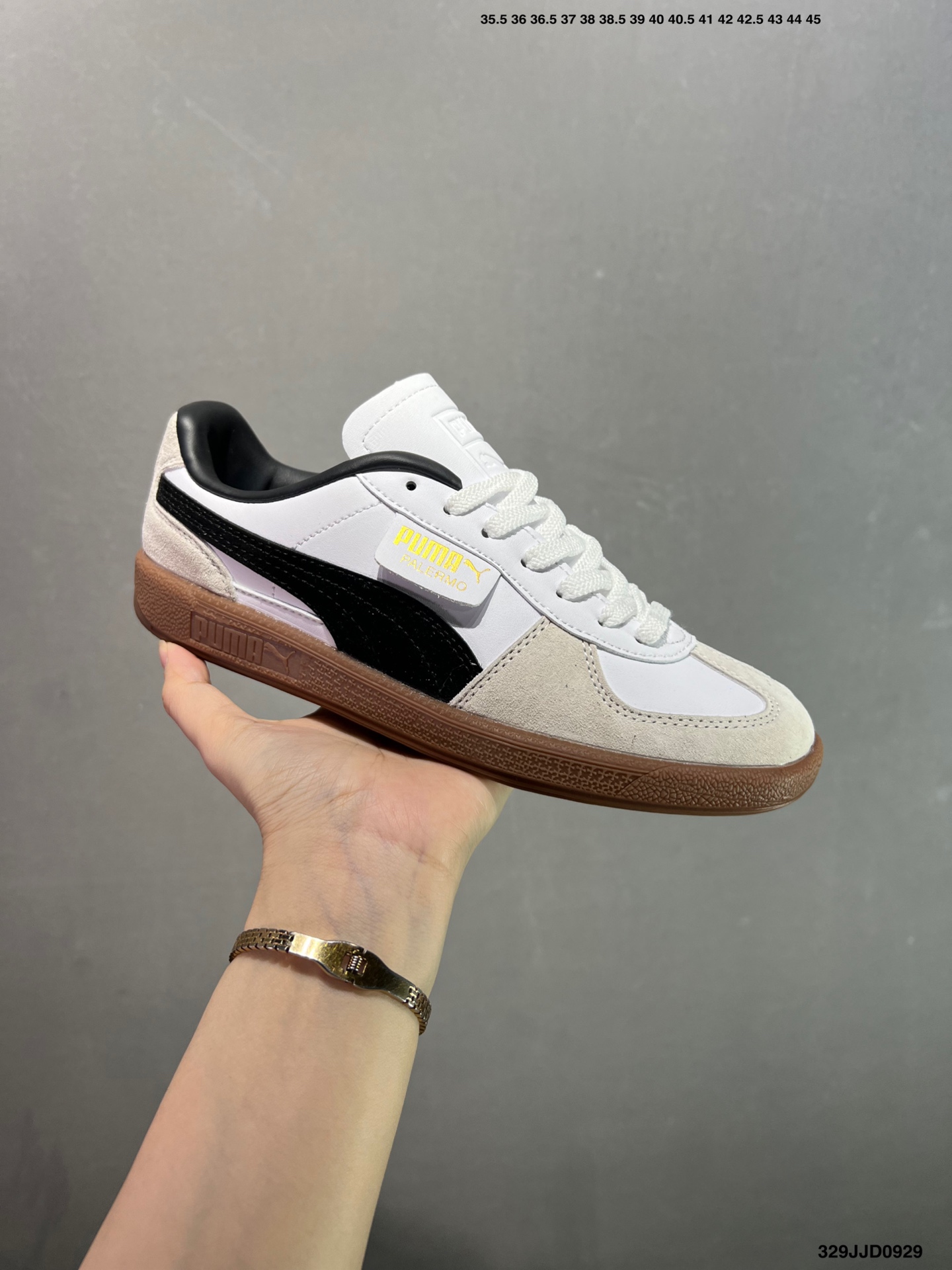 🈴️💰110 ✅Puma Palermo 黑白 舒适百搭低帮德训板鞋 孔眼底座和脚趾凸起由绒面革材料制成 支持侧踏时的踏步工作 脚背和侧板采用尼龙网布 即使在健身房等使用环境中也能确保透气性 像吸盘一样的设计是为了提高体育馆表面的抓地力性能 货号:396463-10 尺码: 36 36.5 37.5 38 38.5 39 40 40.5 41 42 42.5 43 44 45 编码:329JJD0929